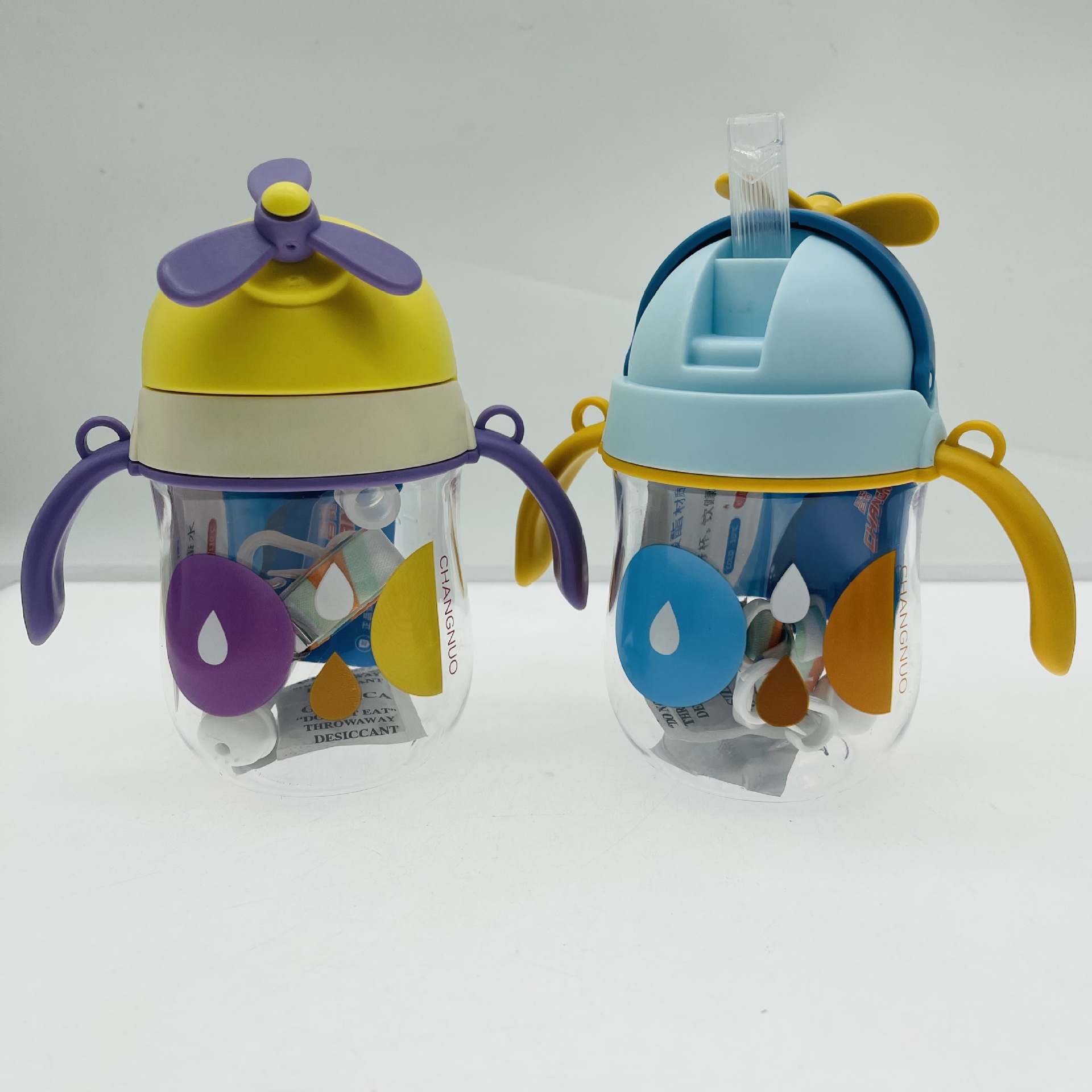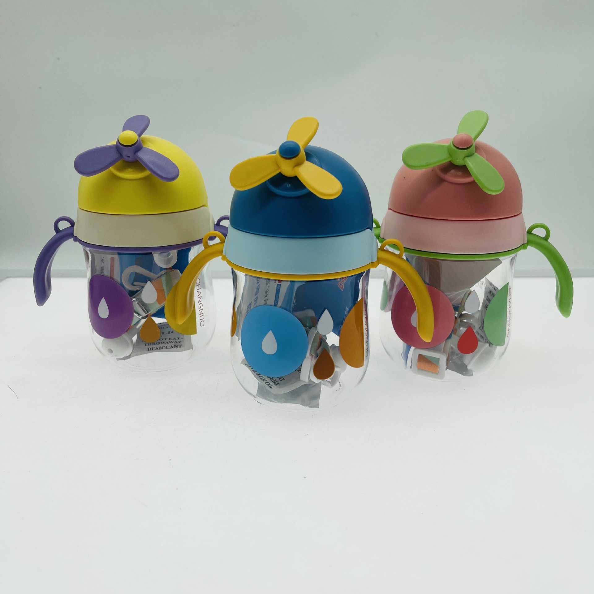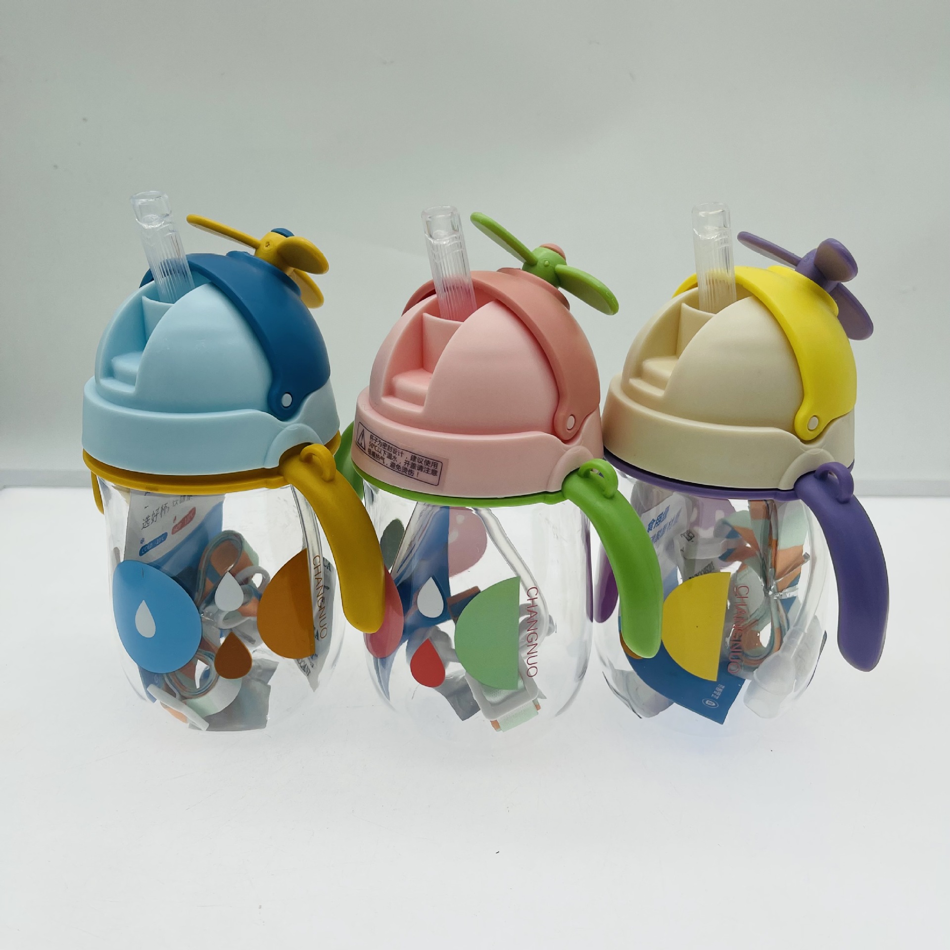 Tianyi 0941 taza absorbente para niños manejar taza de beber ventilador divertido cubierta elástica correa de plástico taza de estudiante al aire libre