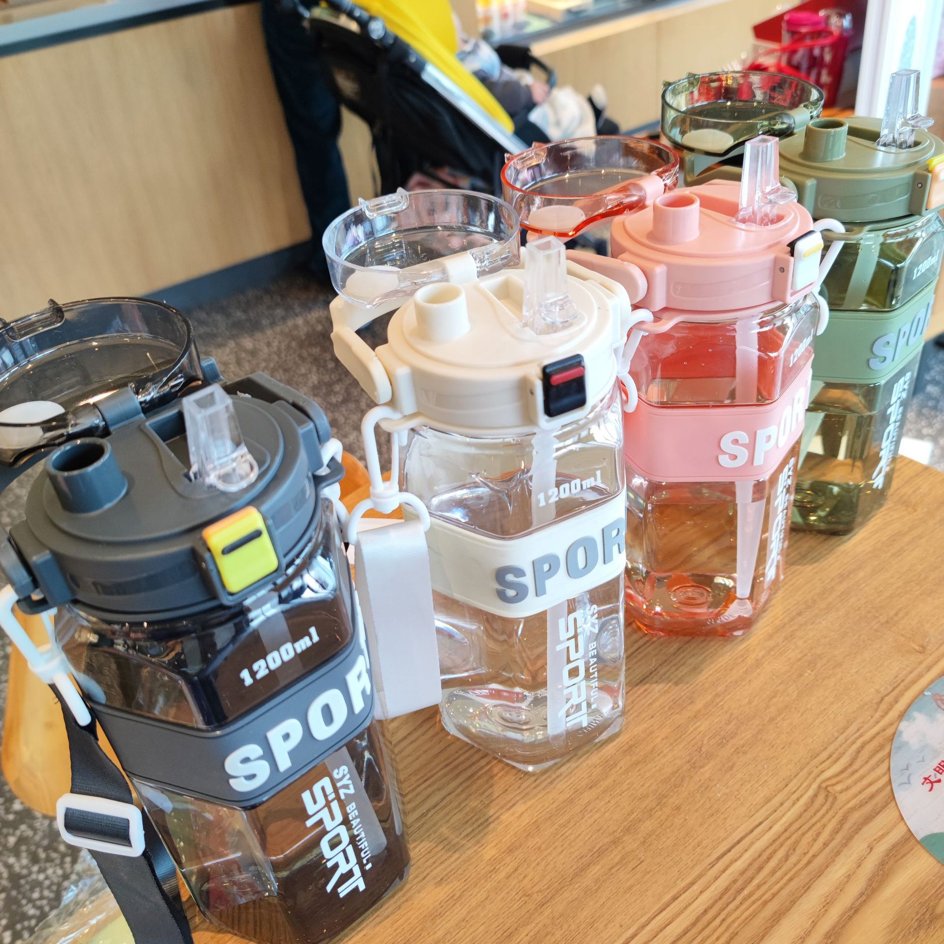 Nuevo producto de verano Taza de agua transparente de doble bebida Correa portátil Taza de agua deportiva al aire libre de gran capacidad hexagonal al por mayor