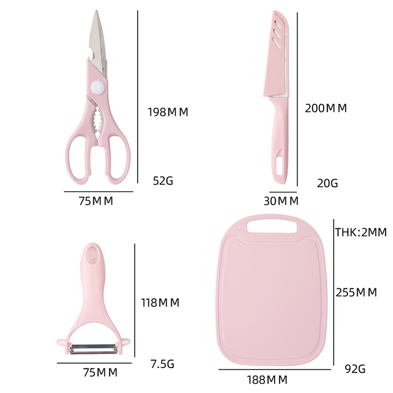 | Número de artículo | 02 cuchillo de frutas de plástico de cuatro piezas |
