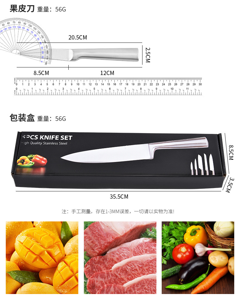 Cuchillo de mango redondo recto conjunto de cuchillo de acero completo de cinco piezas cuchillo de cocina de acero inoxidable cuchillo de cocina cuchillo japonés cuchillo de frutas
