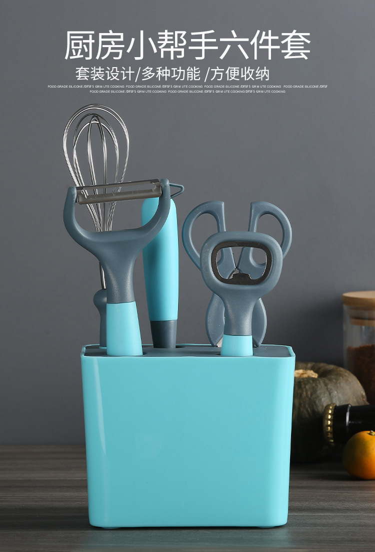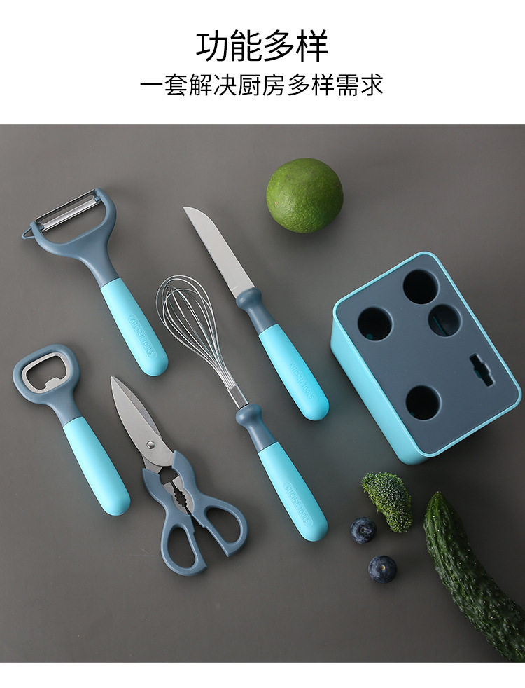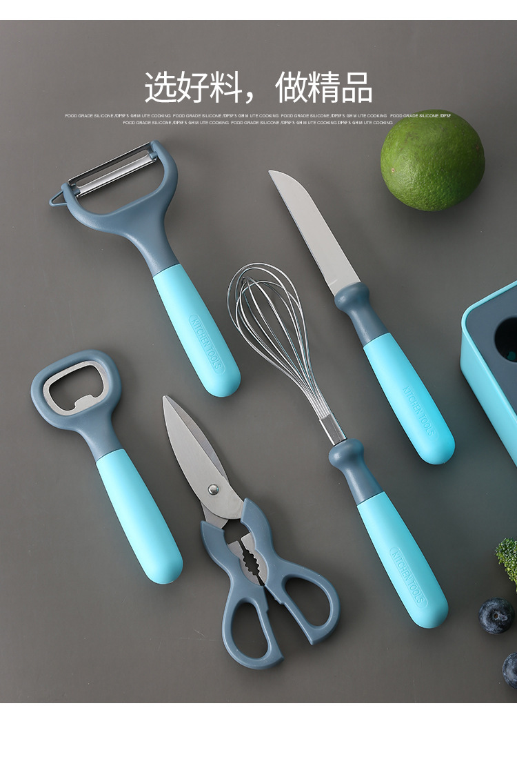Herramientas de cocina transfronterizas PP conjunto de cinco piezas con asiento de almacenamiento abrebotellas cortador de melón planador de alimentos suplementarios cortadores de frutas