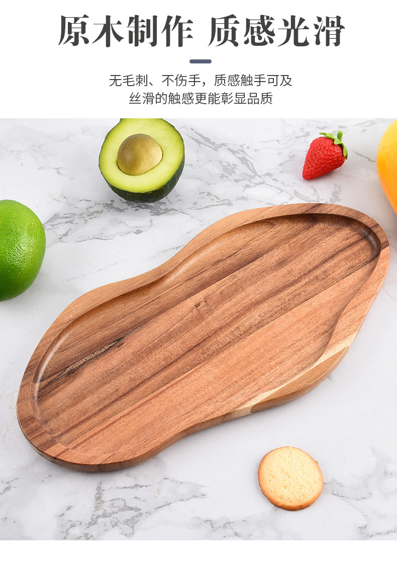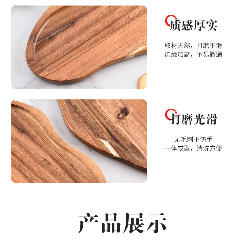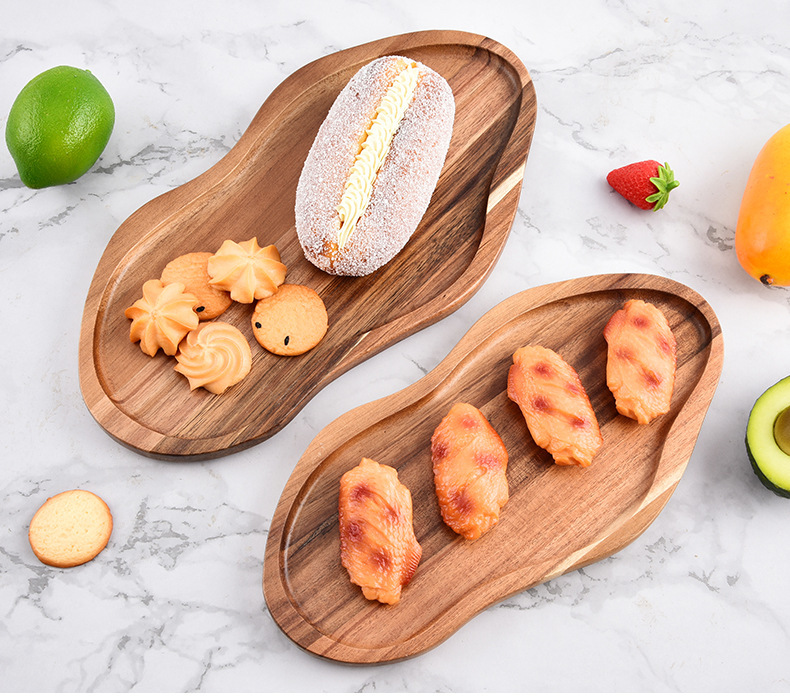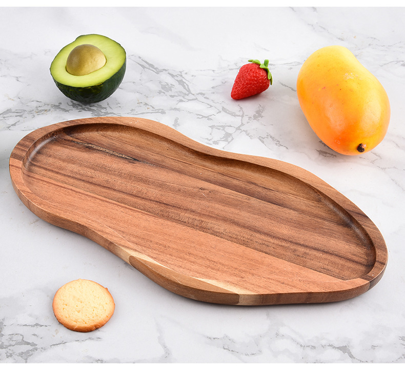 Bandeja de madera de acacia irregular Bandeja de pan de postre horneado de alimentos cocidos Bandeja de queso cocido doméstico de madera maciza