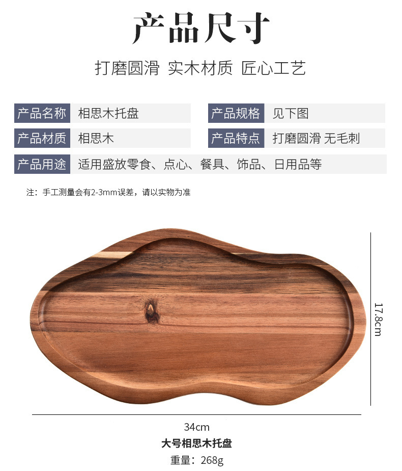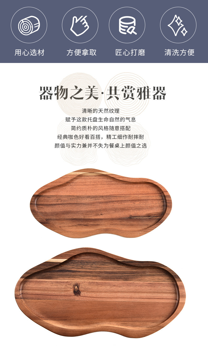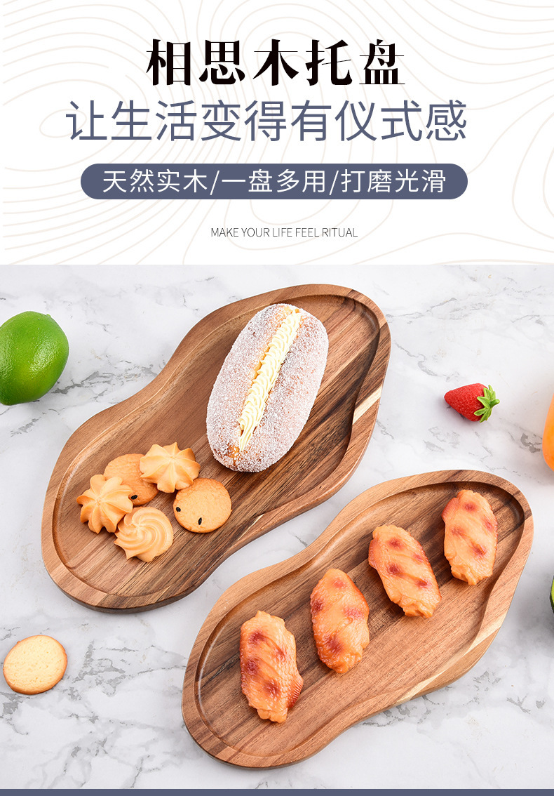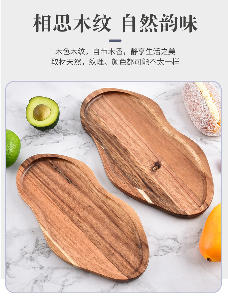 Bandeja de madera de acacia irregular Bandeja de pan de postre horneado de alimentos cocidos Bandeja de queso cocido doméstico de madera maciza