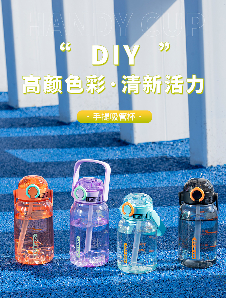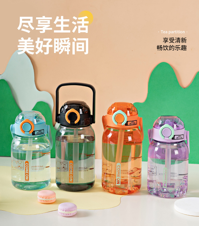 Qitong taza de plástico lindo pequeña tonelada taza de beber directa hervidor de plástico deportes al aire libre taza fuente fabricante 1000ml hervidor de agua