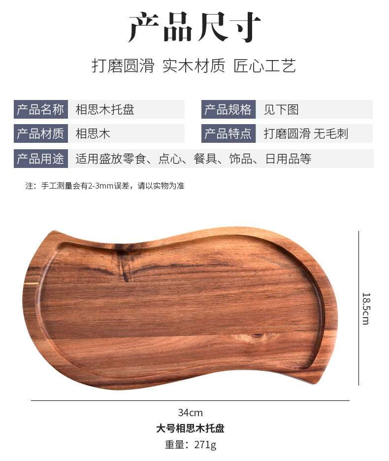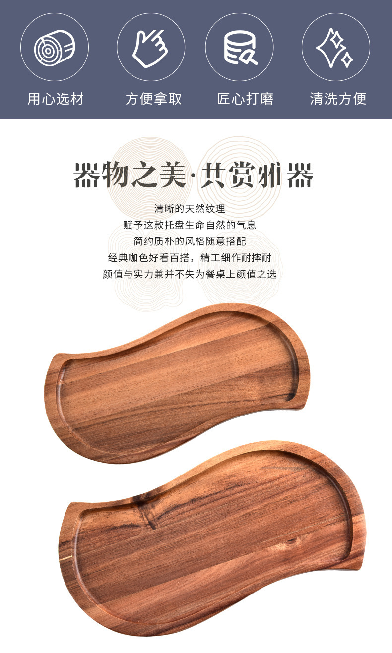 bandeja de madera de Acacia rectangular bandeja de madera sólida bandeja de madera bandeja de té japonesa barbacoa snack pastel plato de madera