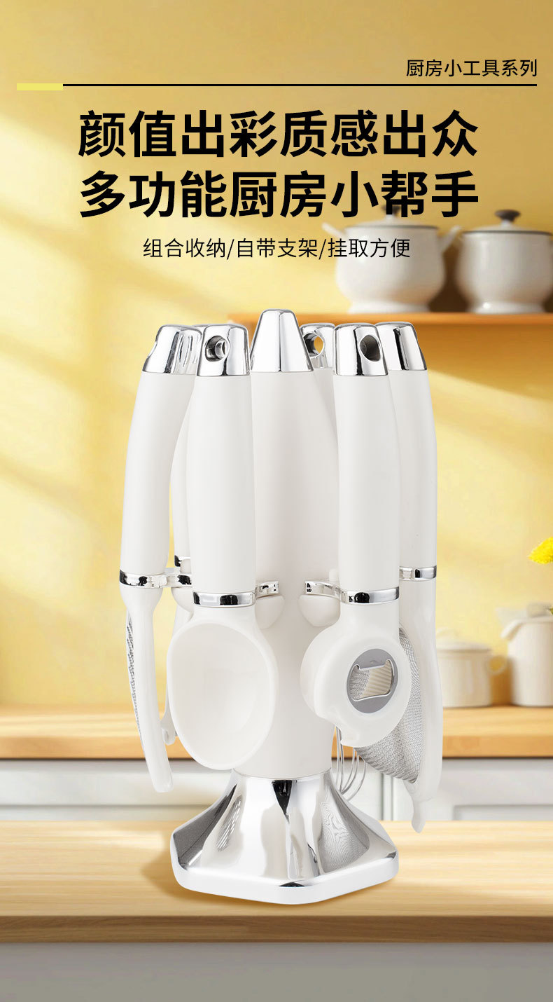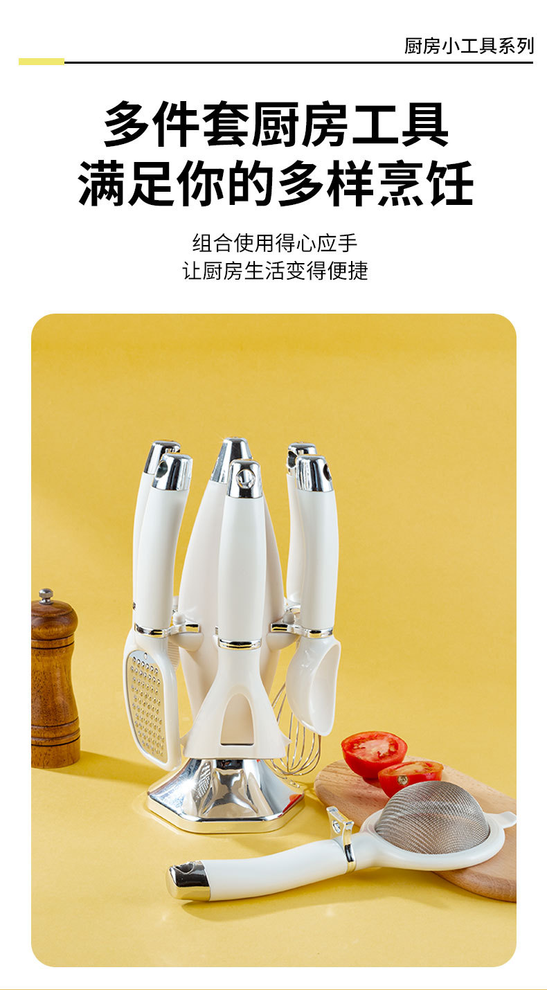 Nuevo conjunto de herramientas de cocina con soporte de asiento cuchillo de piel casero abridor de botellas cuchara de helado cuchillo de pizza conjunto de combinación