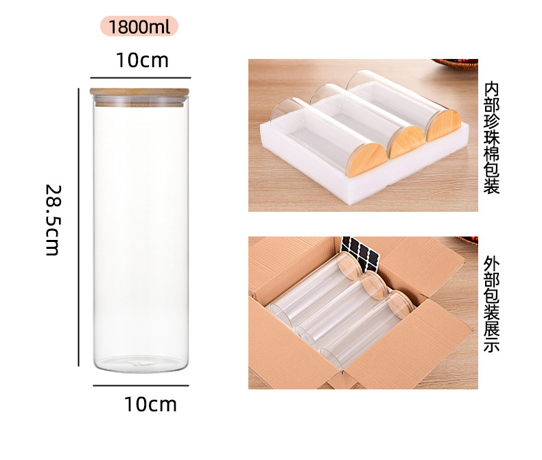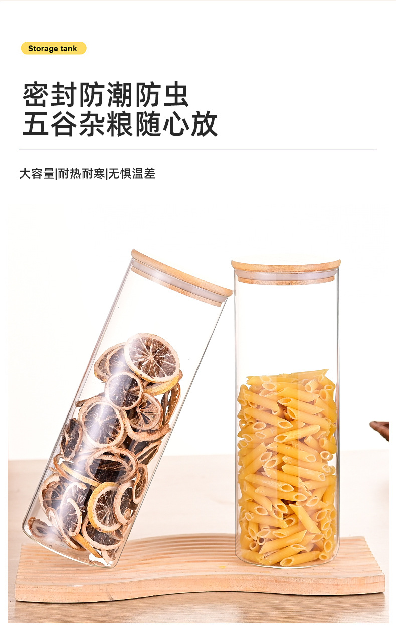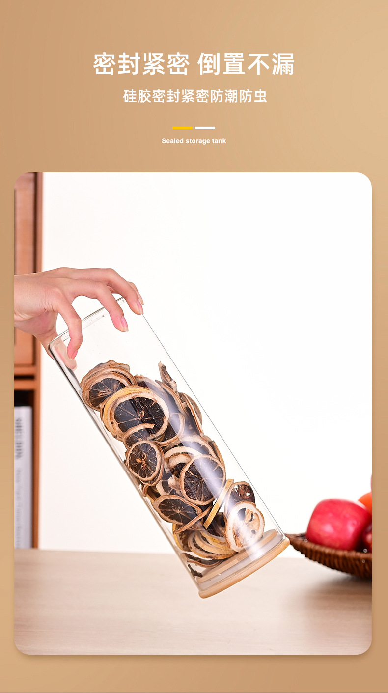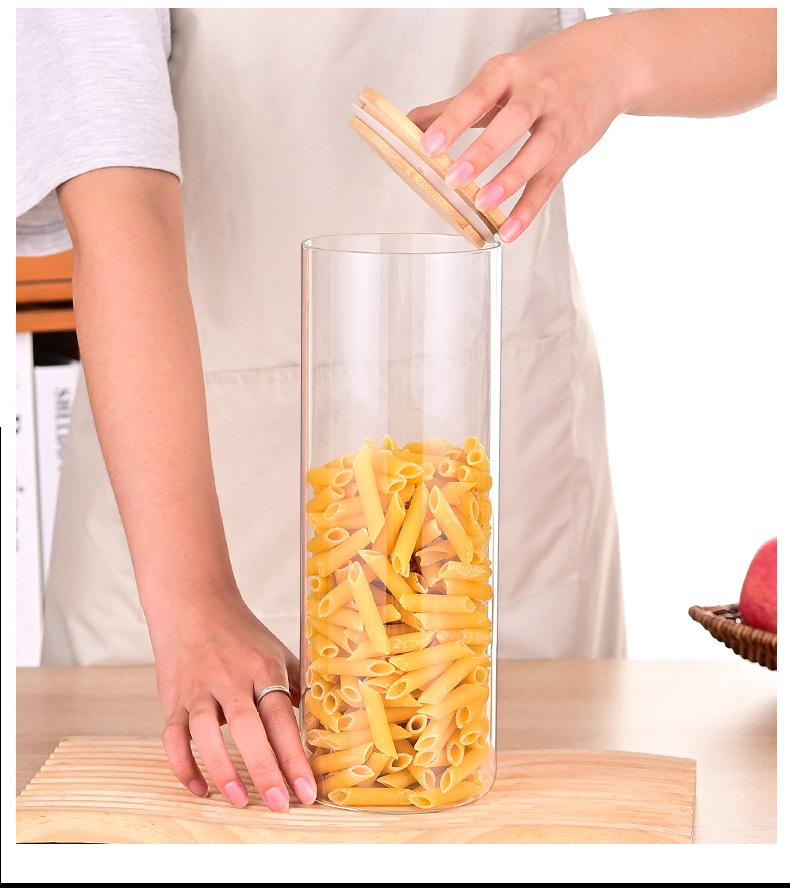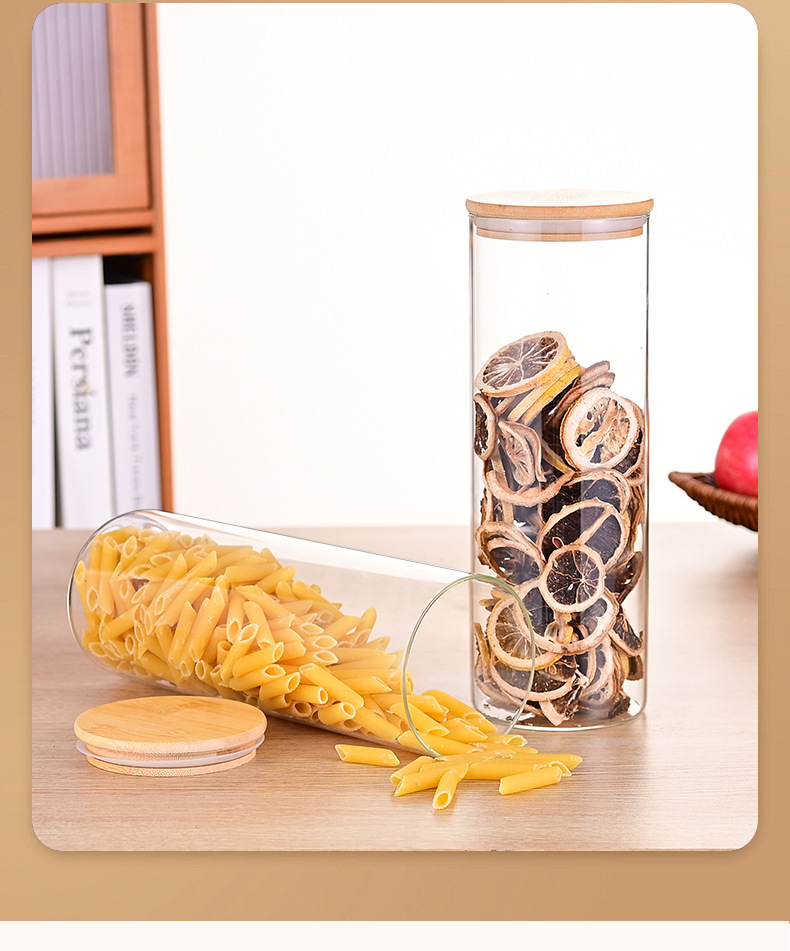 Gran capacidad de alta borosilicona vidrio sellado tanque de almacenamiento cubierta de bambú conjunto de nueces granos de té almacenamiento de grado alimenticio