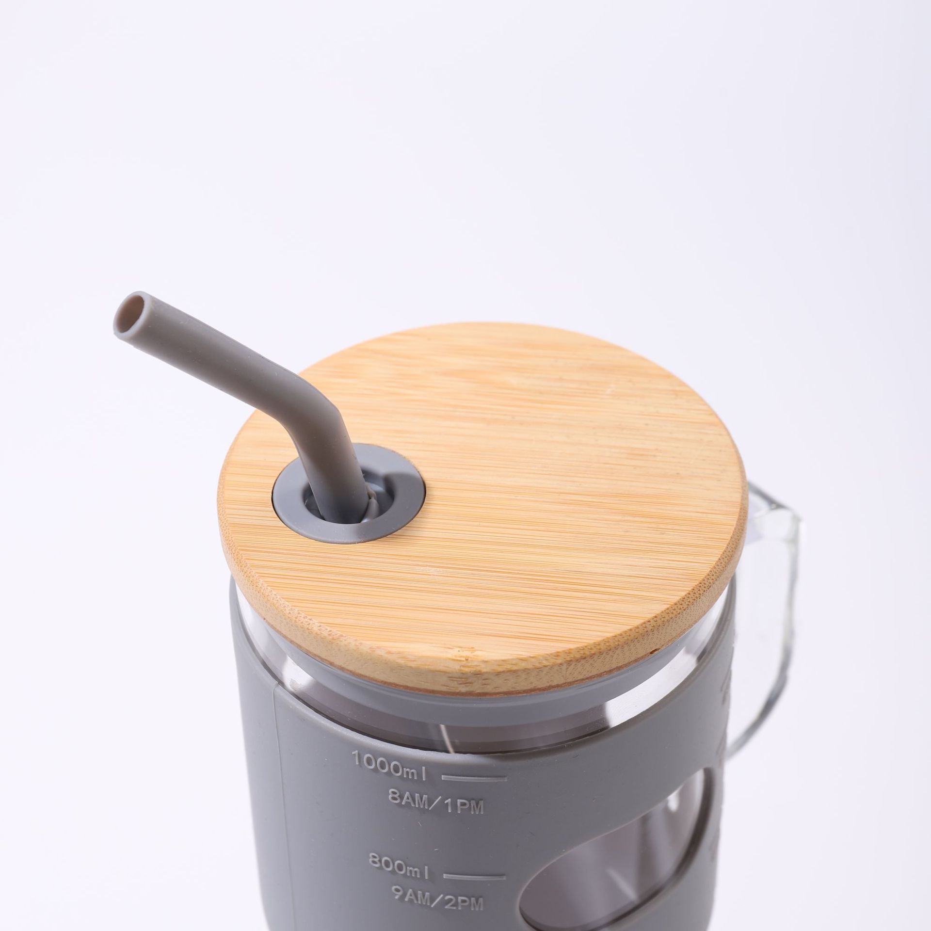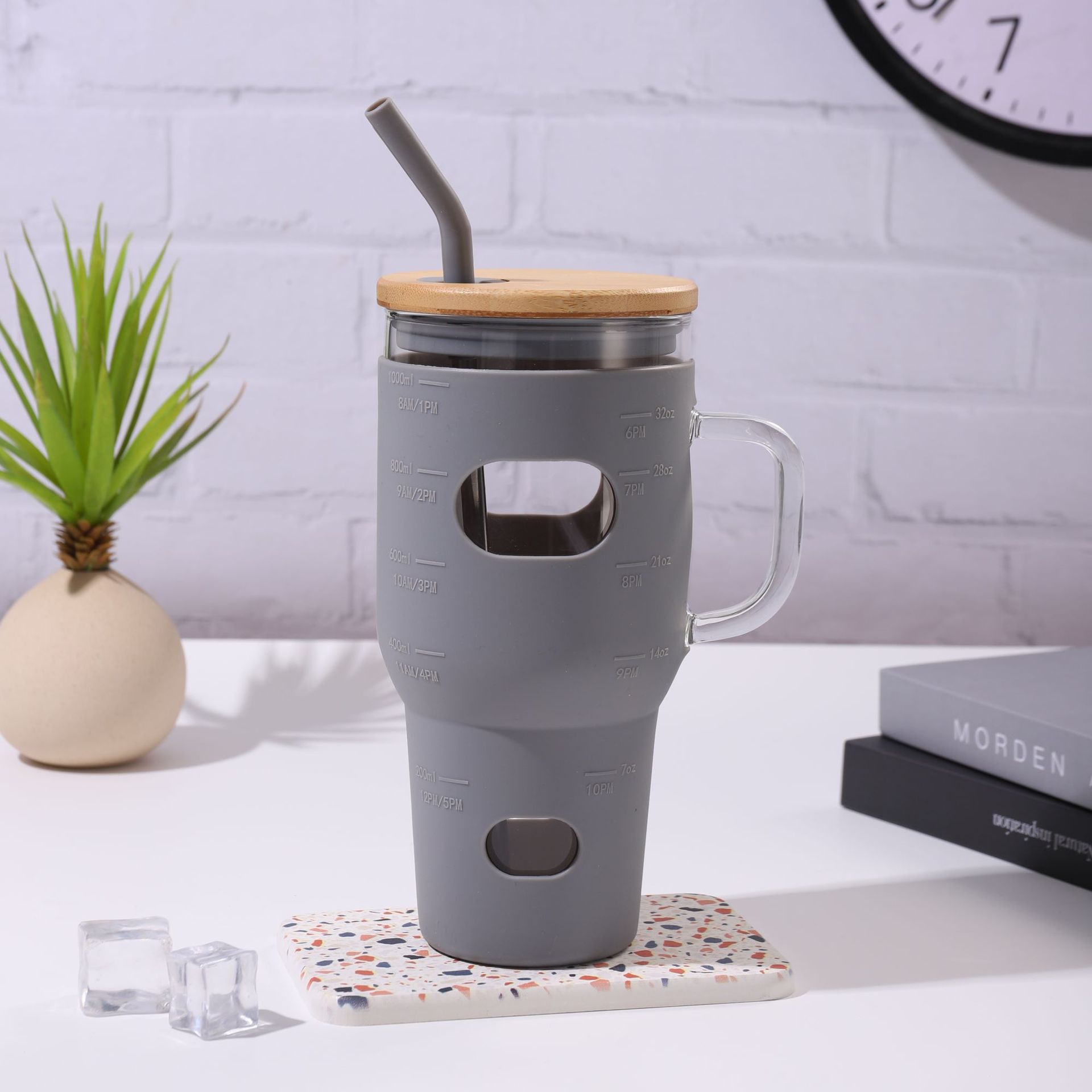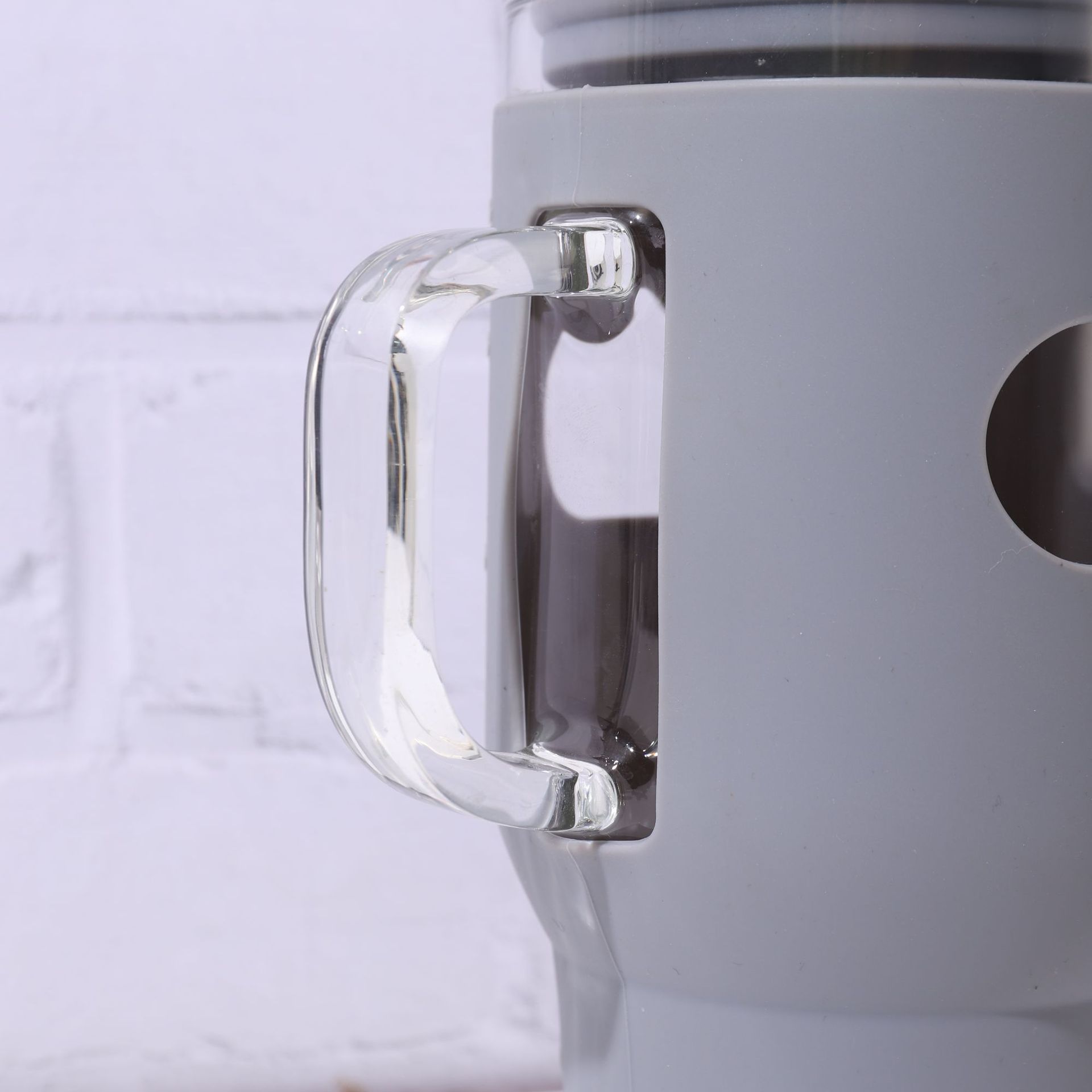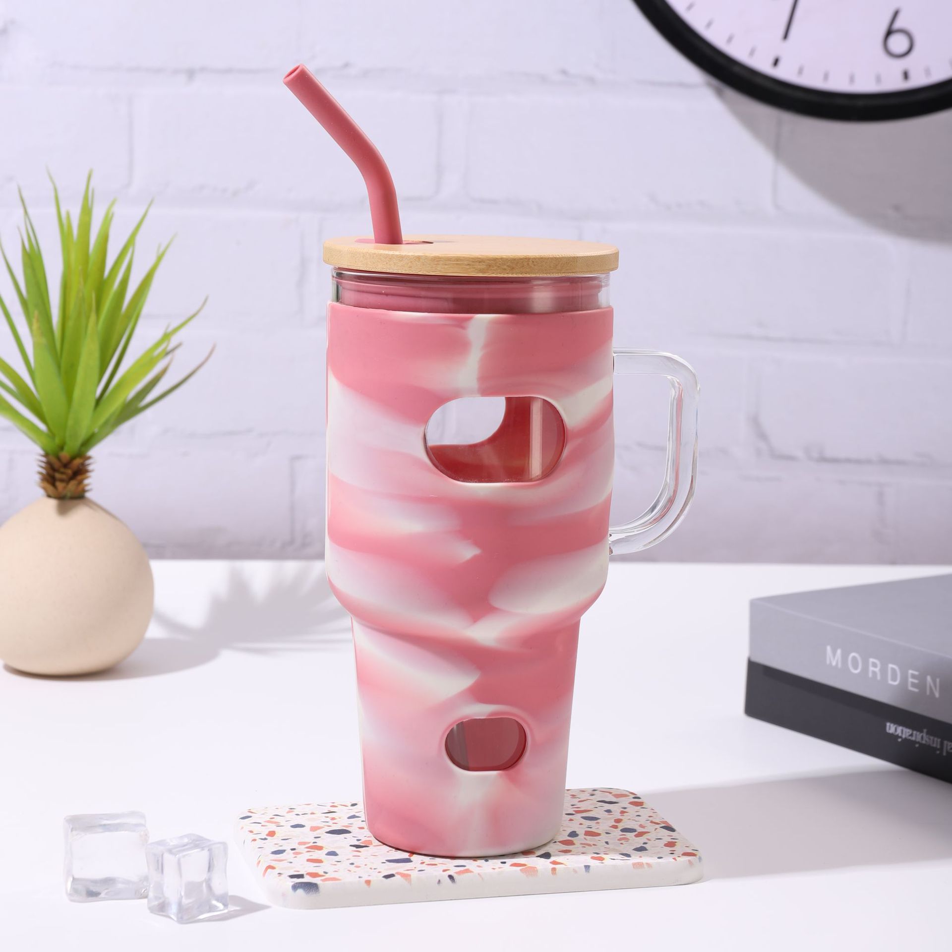 Taza de vidrio de 30oz, cubierta de silicona a prueba de caídas, taza de paja de gran capacidad con mango, taza de menú de hielo