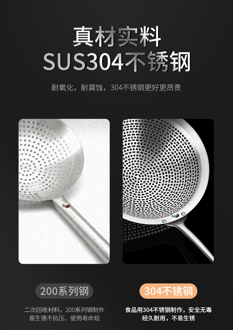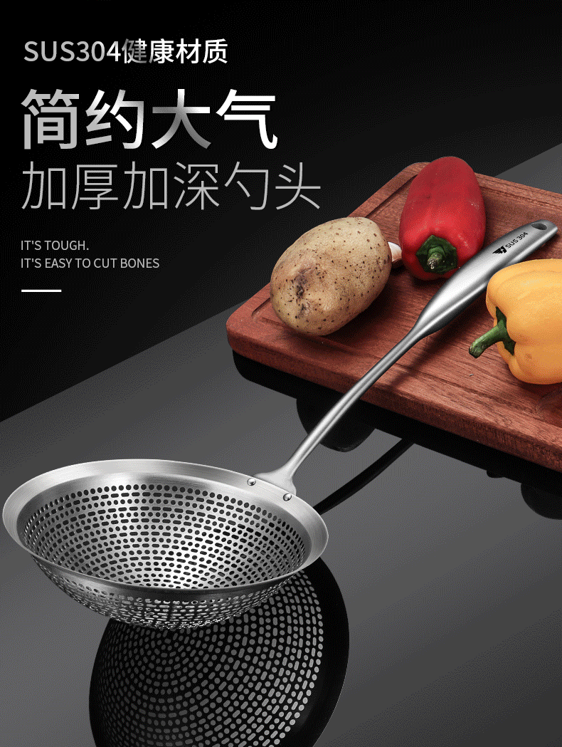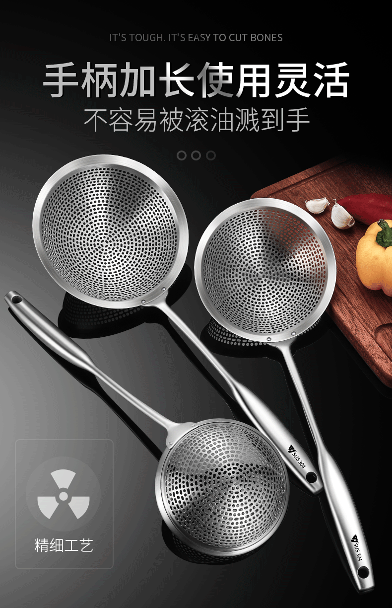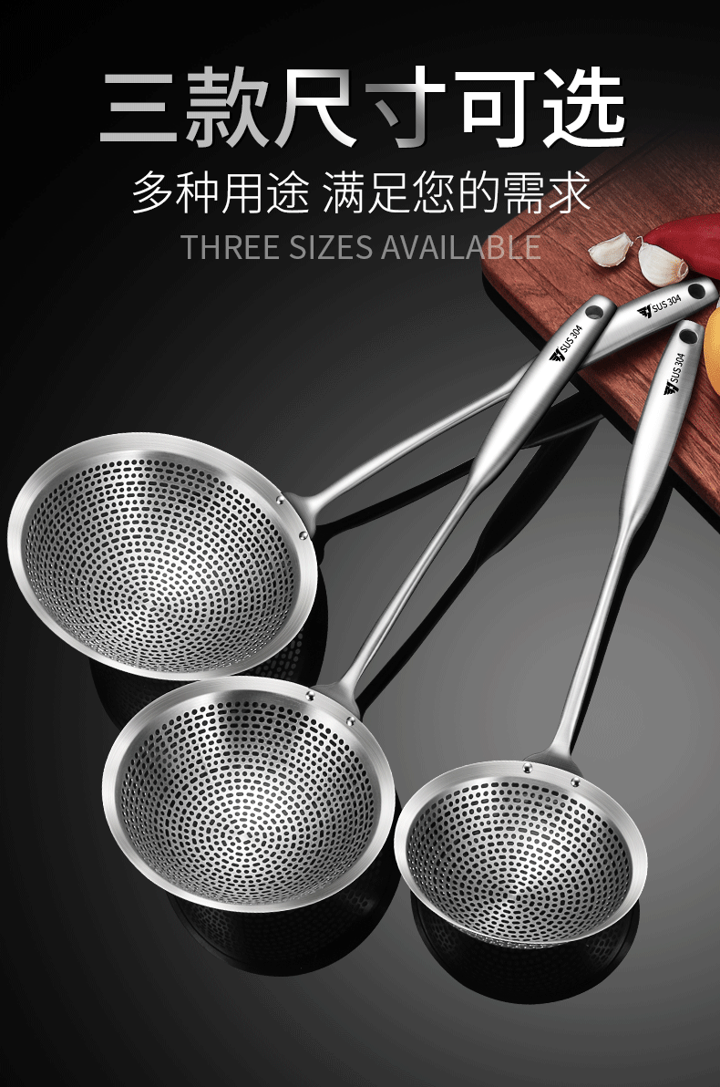 SUS304 acero inoxidable gran fuga de cocina cuchara de cocina olla caliente frita filtro de grilla de aceite fábrica al por mayor