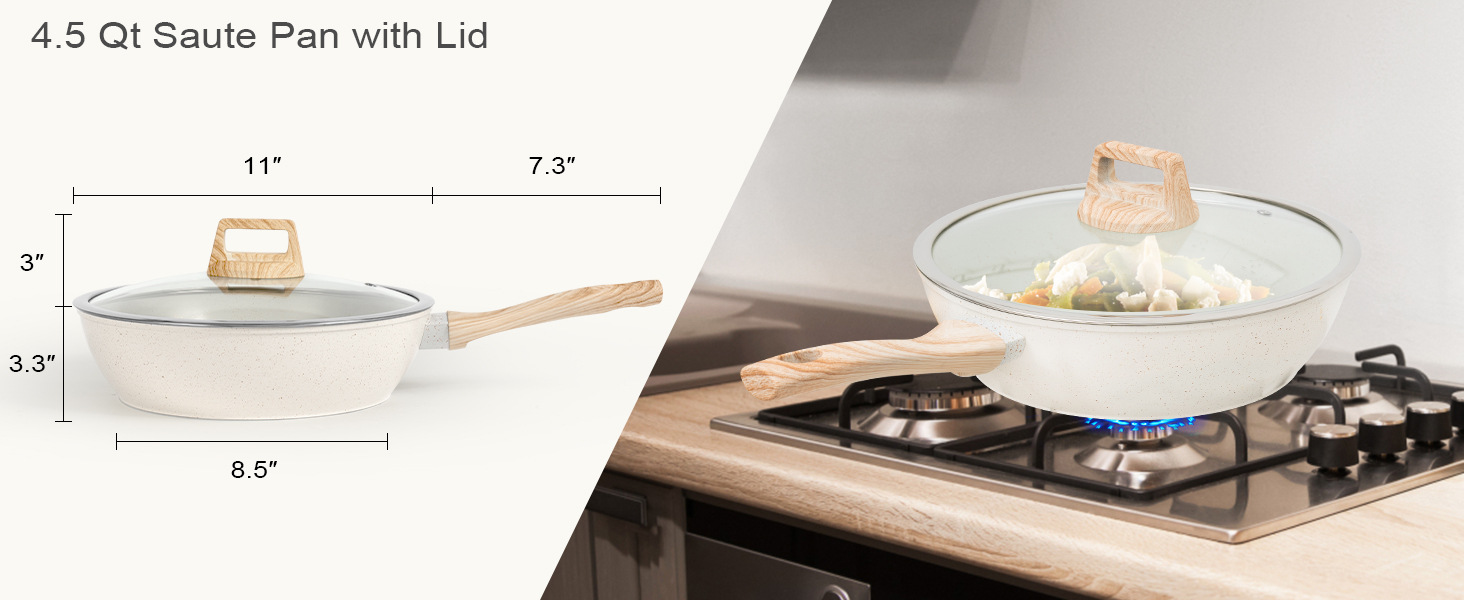 | Configuración del paquete | Olla de leche de 16cm, olla de sopa de 24cm, sartén poco profunda de 24cm, sartén poco profunda de 28cm, sartén profunda de 28cm, pala de silicona, cuchara, clip, vaporizador |