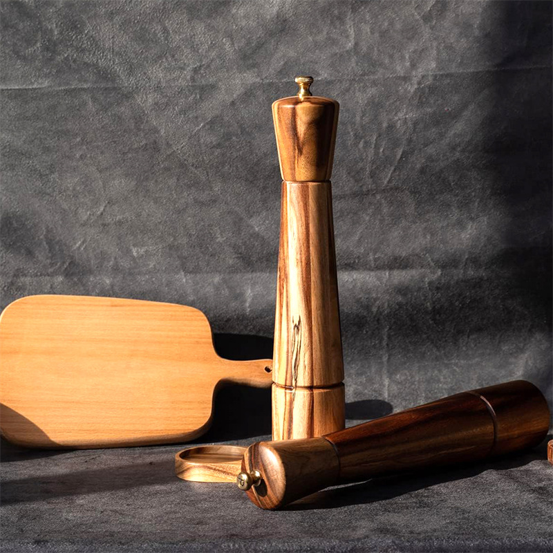 10 pulgadas de Acacia madera molino de pimienta manual de espesor ajustable molinillo de pimienta cocina condimento botella molinillo