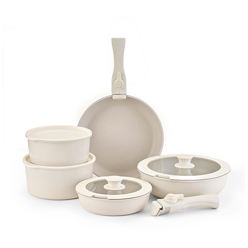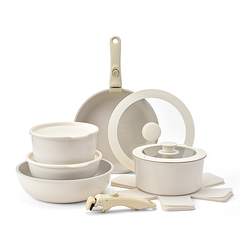 | Configuración del paquete | Olla de sopa de 18cm, olla de sopa de 20cm, frito poco profundo de 20cm, frito profundo de 26cm, frito poco profundo de 26cm, 2 asas desmontables, 4 almohadillas de fieltro |