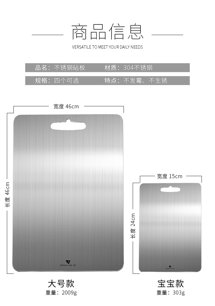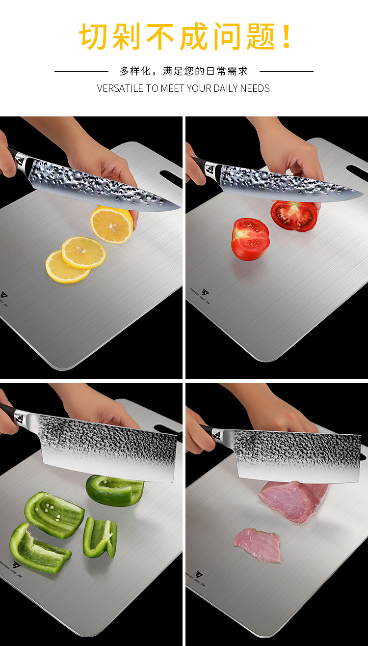 Junta de verduras de acero inoxidable alemana placa de corte antibacteriana a prueba de moho placa de corte de verduras doméstica de cocina de frutas de doble cara