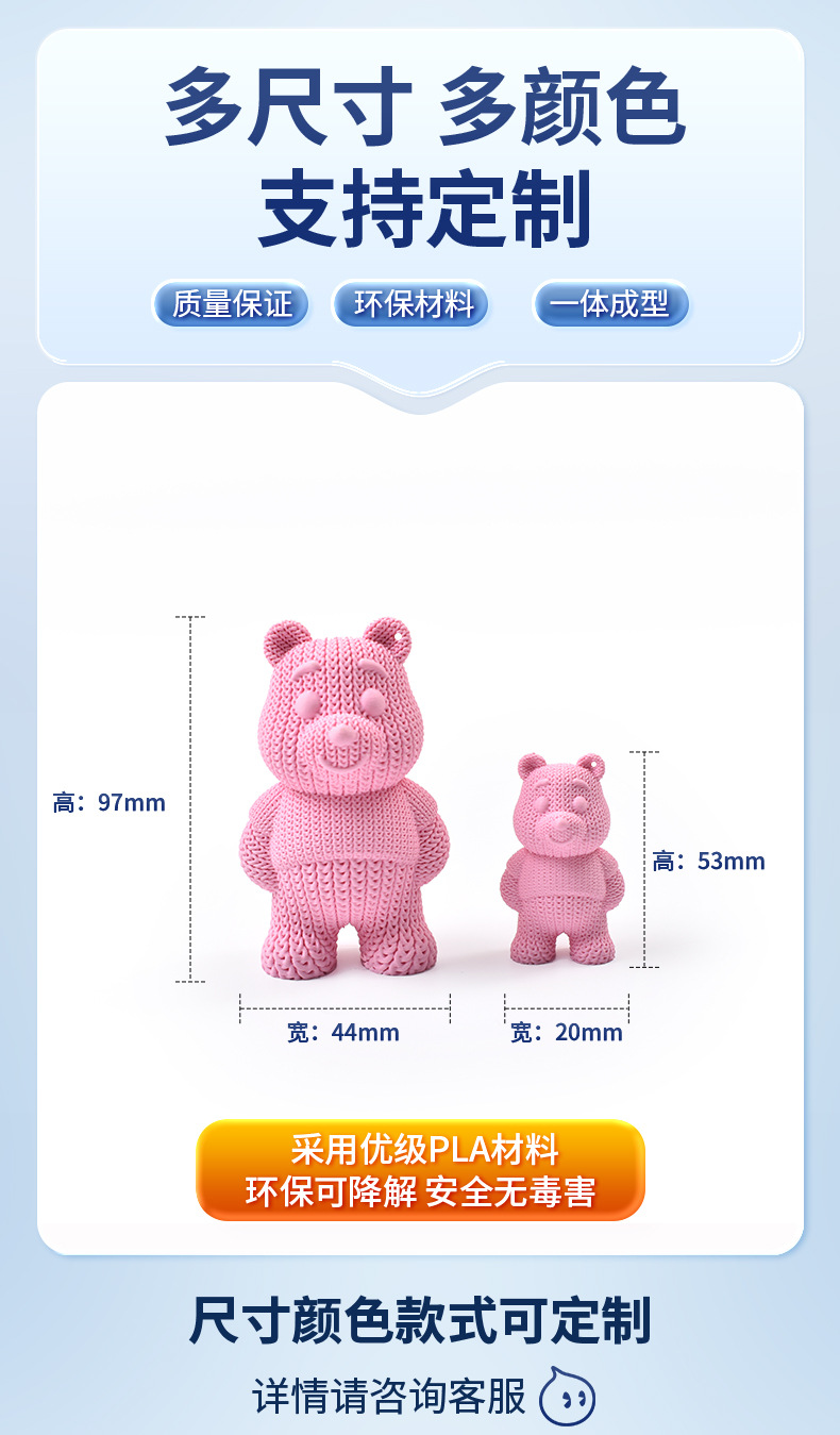 Llavero con Colgante de Osito de Peluche Tejido, Impreso en 3D, Recuerdo, Juguete Impreso en 3D, para Llaves de Coche, Éxito de Ventas Transfronterizo