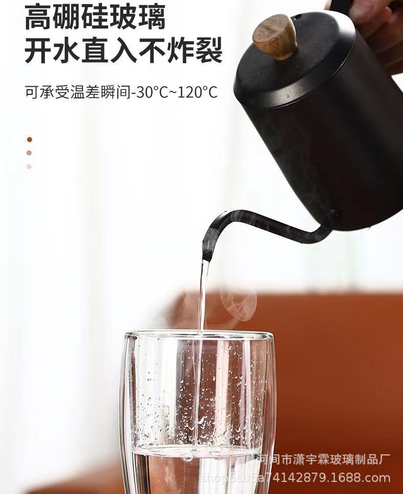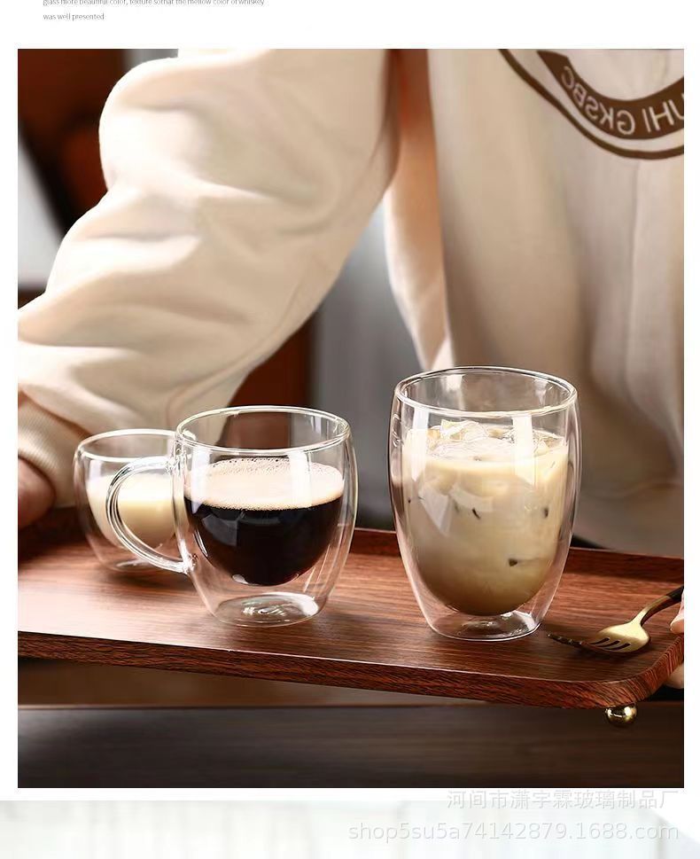 Taza de café de vidrio transparente de doble capa con asa, taza aislante para jugo y leche, taza de agua de doble capa de borosilicato alto, venta al por mayor en stock
