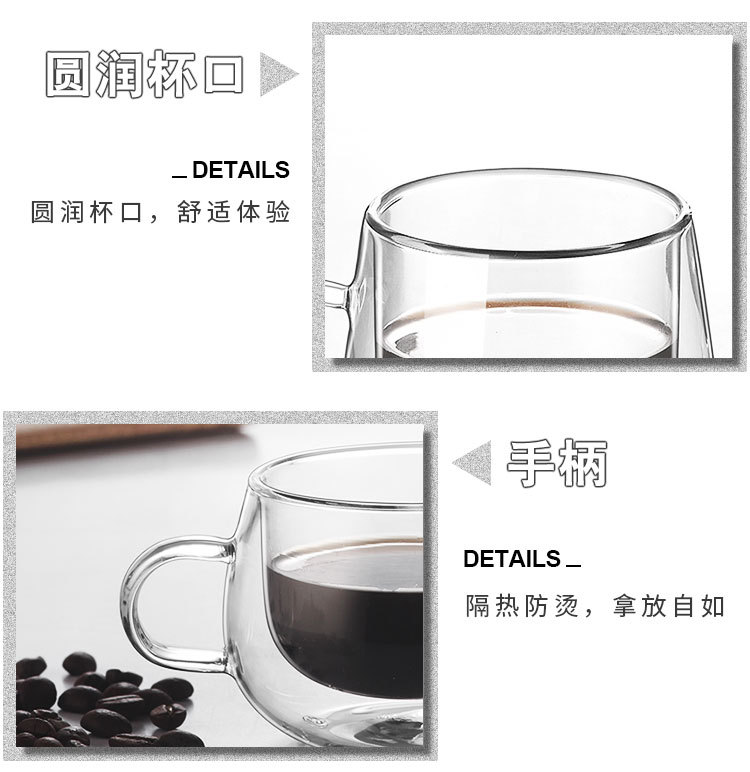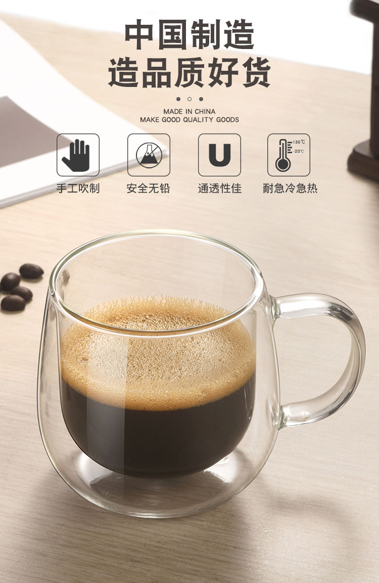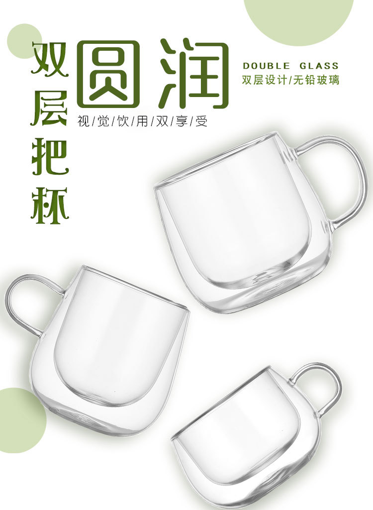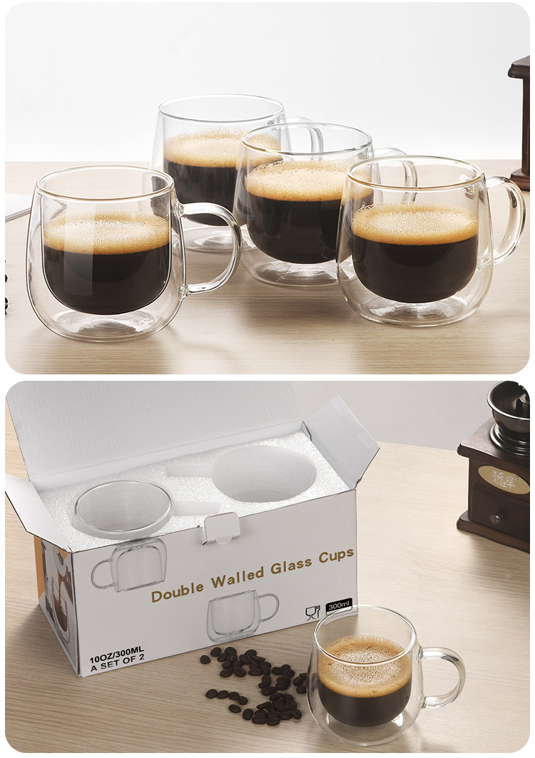 Taza de vidrio de aislamiento térmico de doble capa transfronteriza personalizada con asa Taza de agua resistente al calor para el hogar Taza de café resistente a altas temperaturas con alto borosilicato