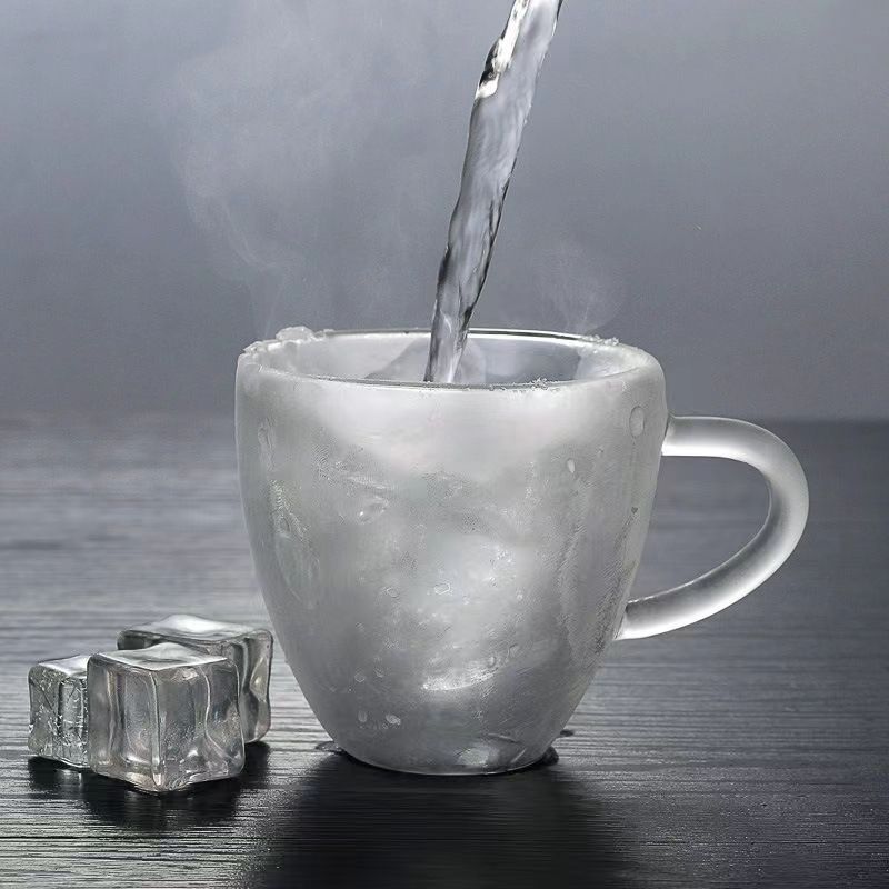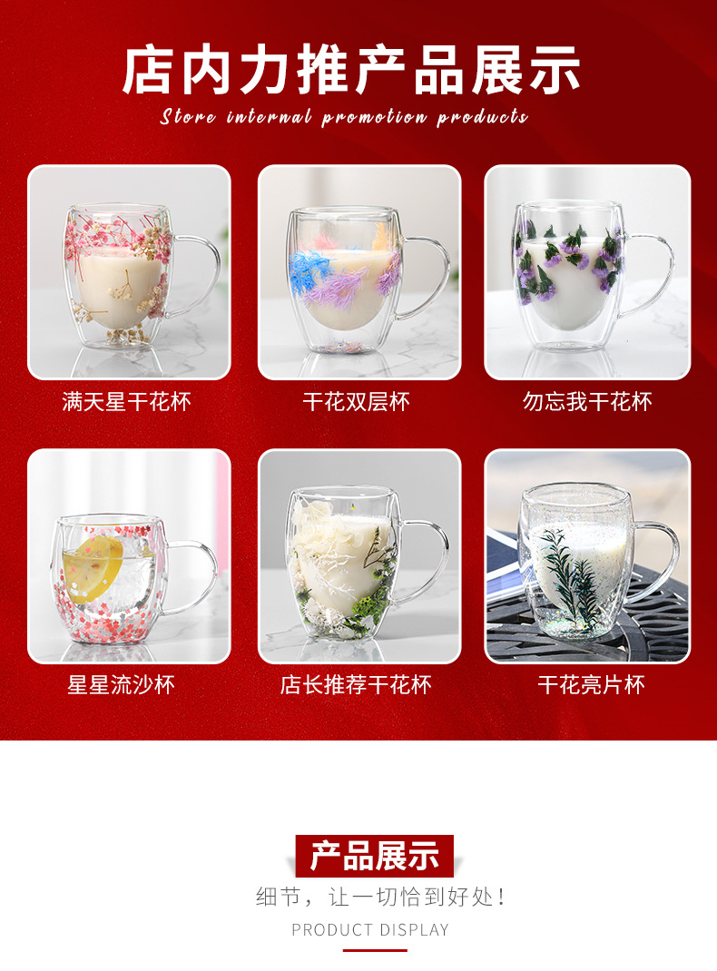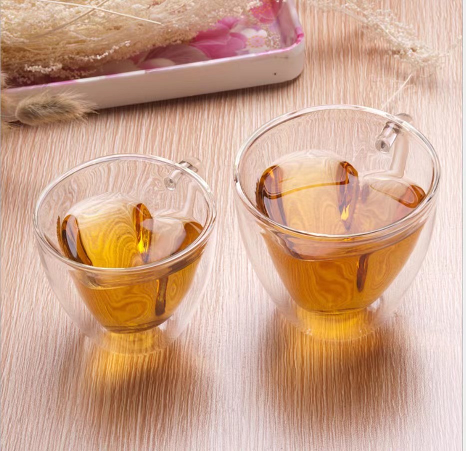Taza de doble capa en forma de corazón con mango anti-escaldado taza de bebida doméstica taza de agua taza de vidrio regalo amor taza de café