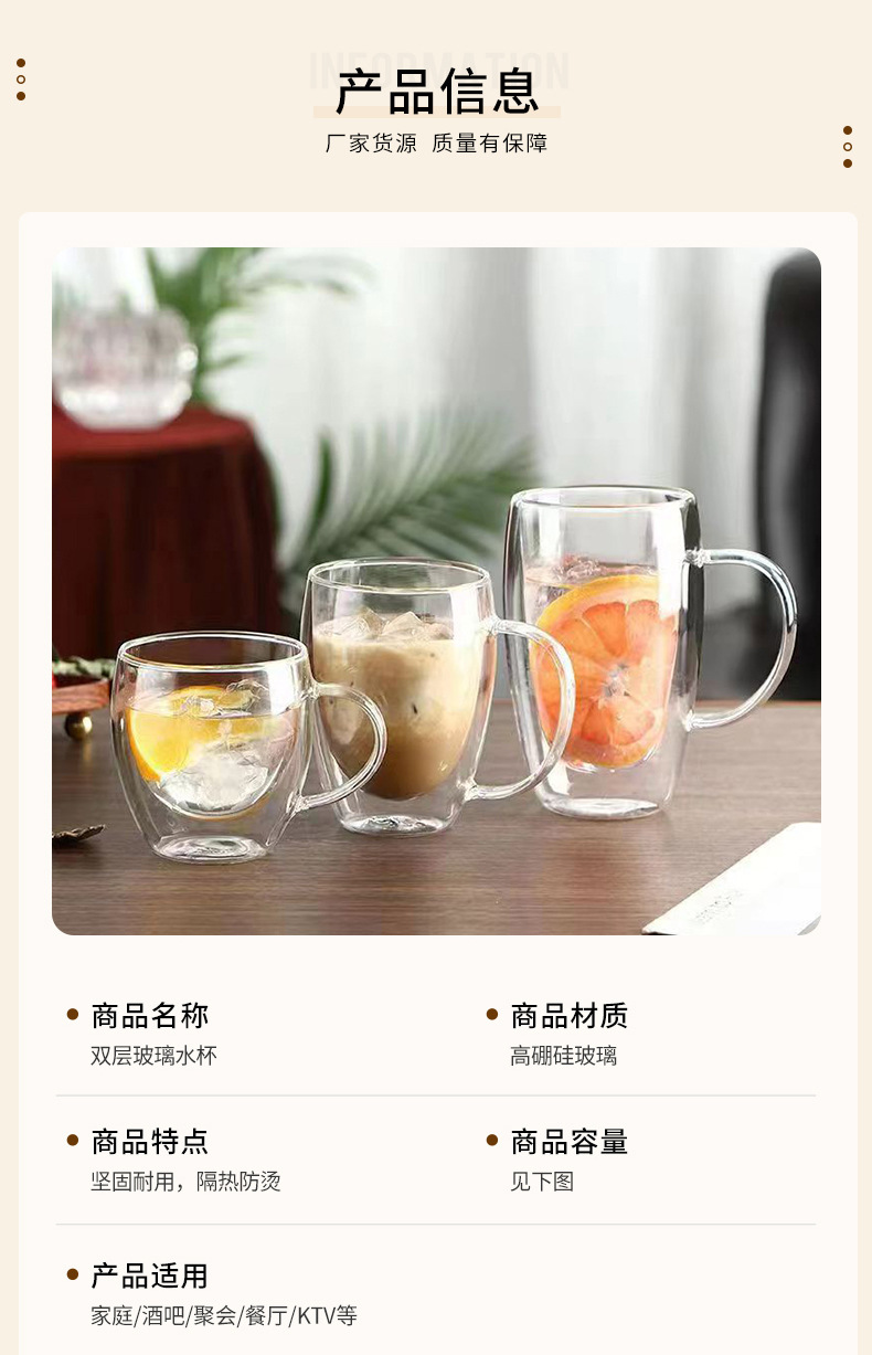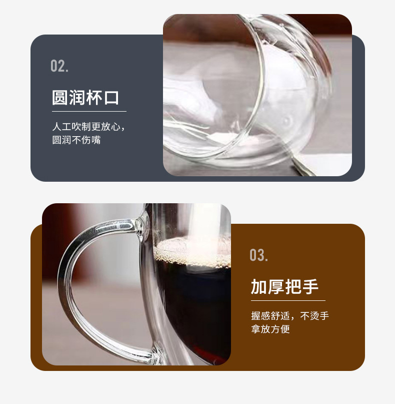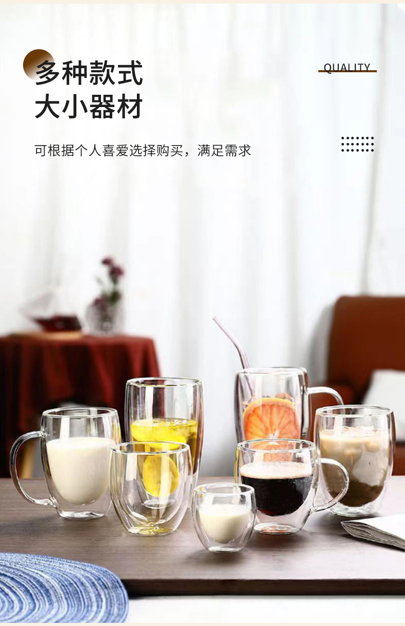 Venta al por mayor restaurante jugo taza de café doble aislamiento vidrio con mango transparente publicidad regalo taza leche