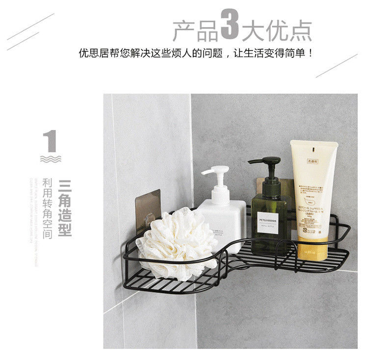 Estante de almacenamiento triangular sin perforaciones cocina baño estante de almacenamiento baño esquina montado en la pared estante de almacenamiento multifuncional
