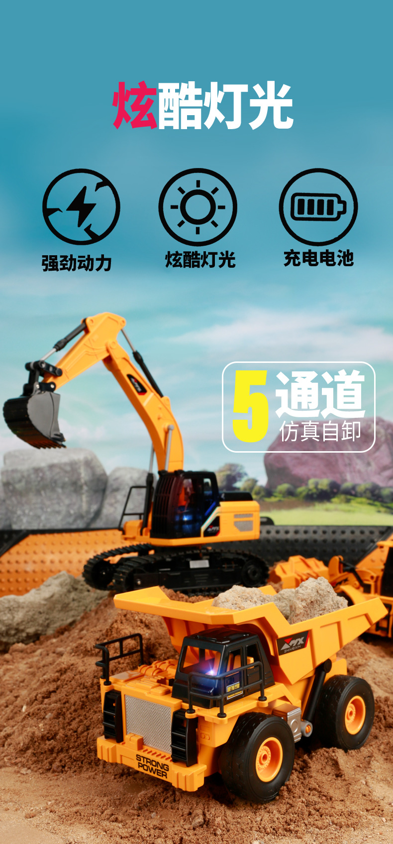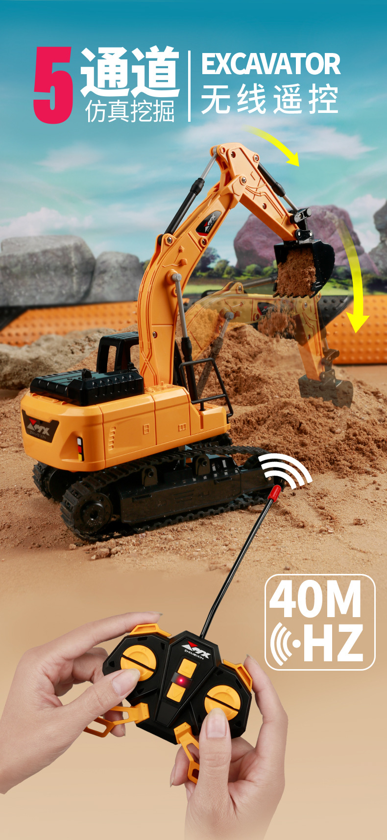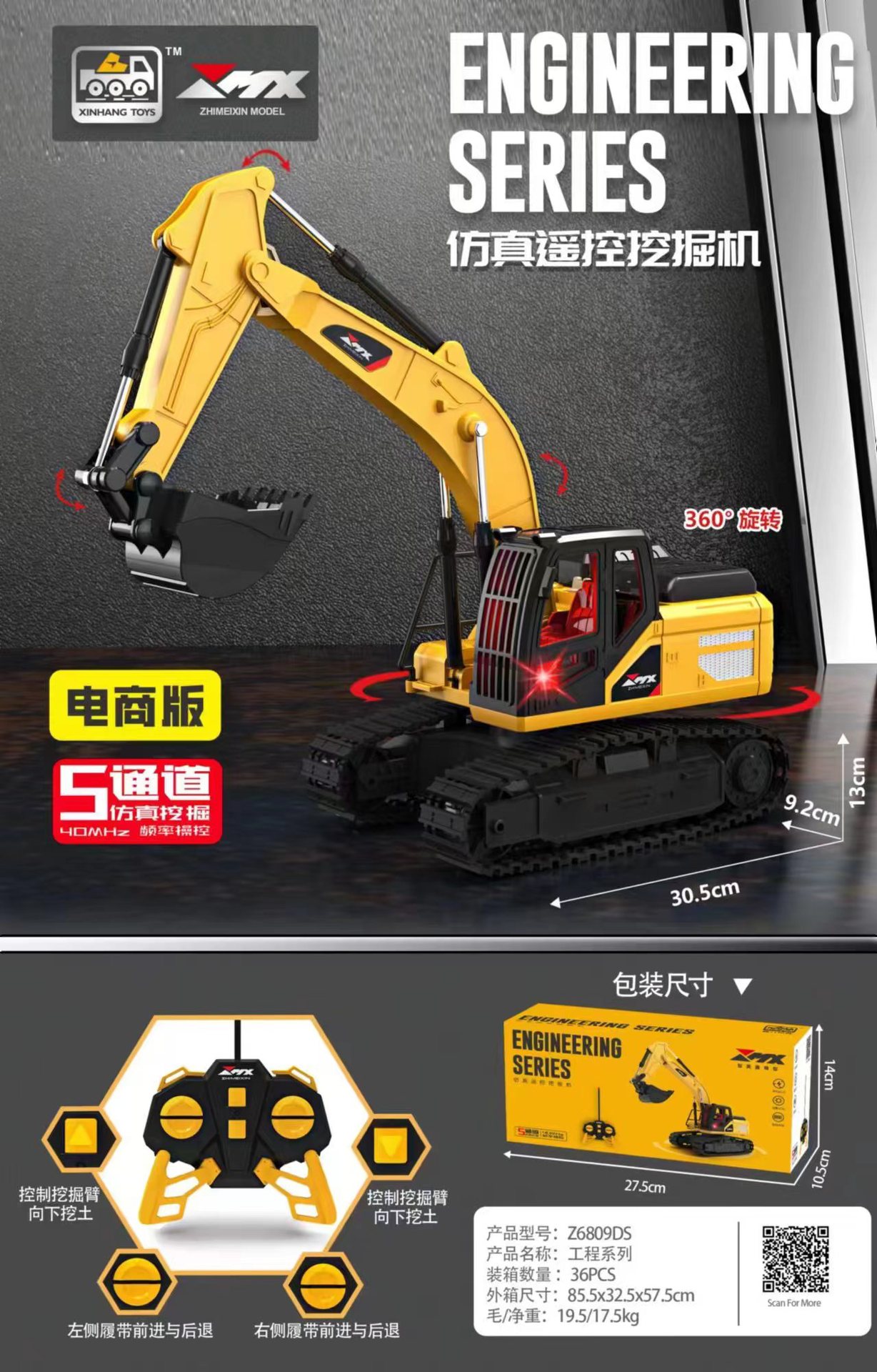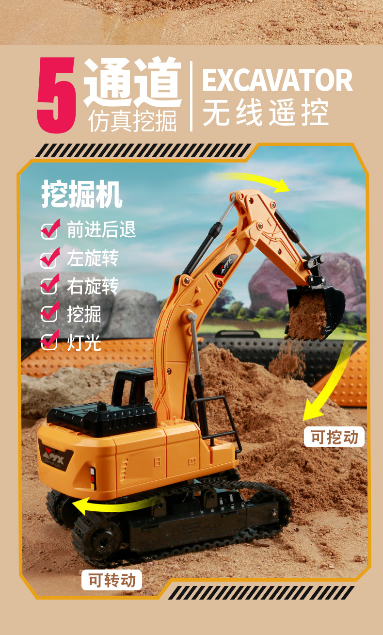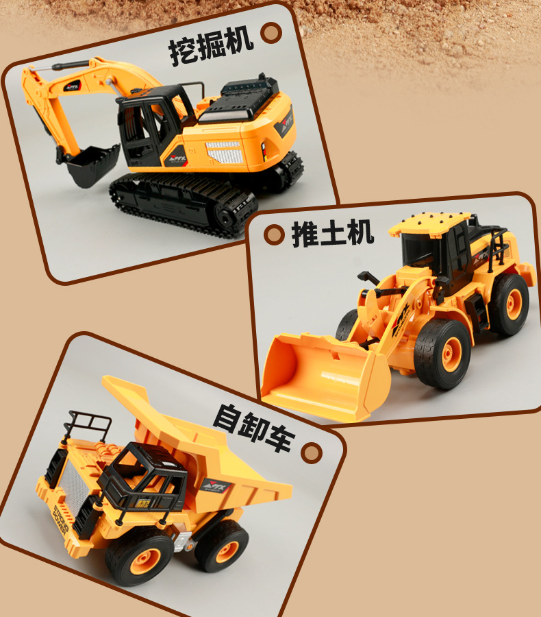 Nuevo seis vías de control remoto excavadora de juguete excavadora modelo de vehículo de ingeniería carretilla elevadora camión de volteo niño coche de control remoto