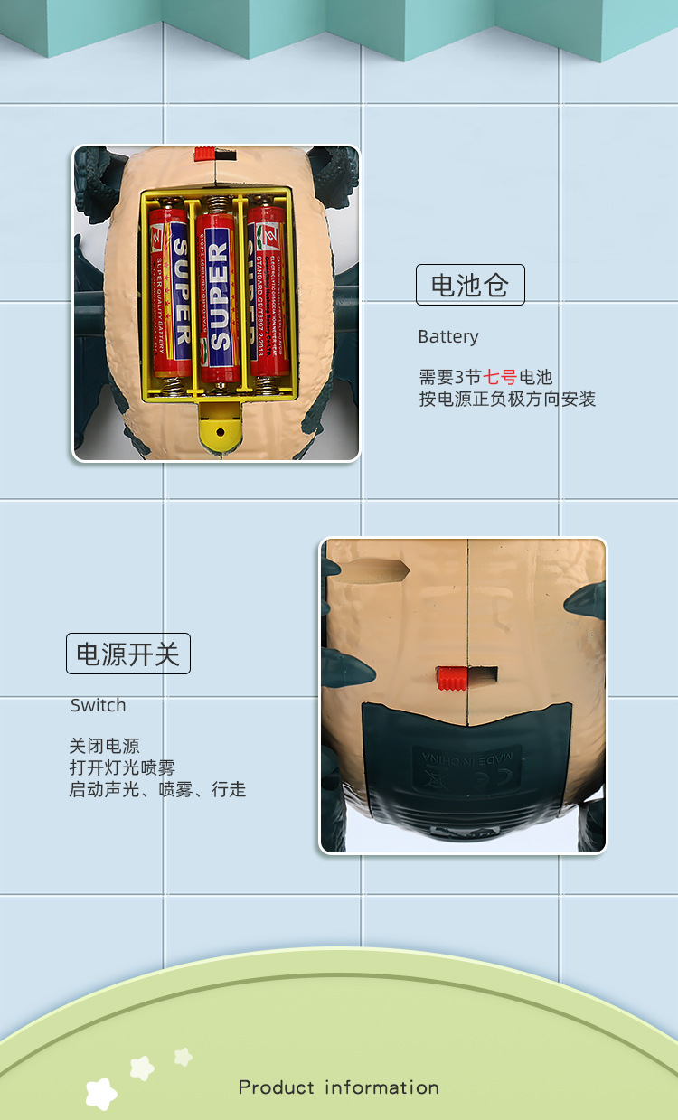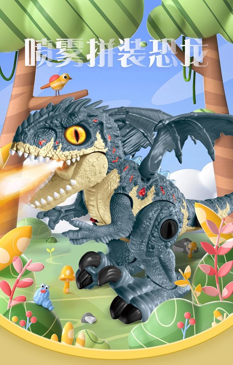 Juguete de dinosaurio eléctrico para niños Música de luz aerosol modelo de simulación de dinosaurio Tyrannosaurus Boy Toy al por mayor