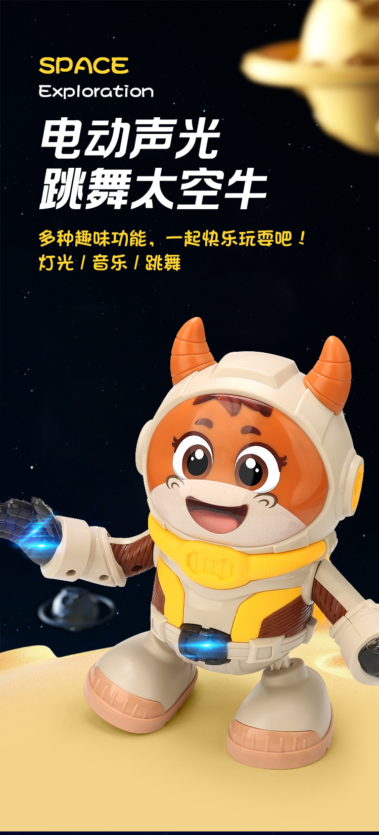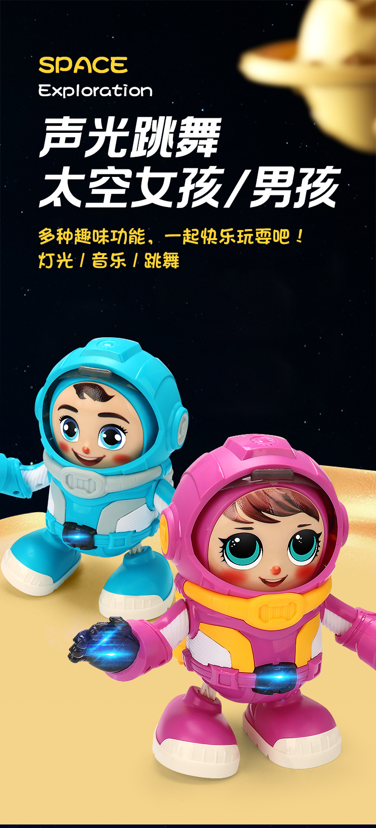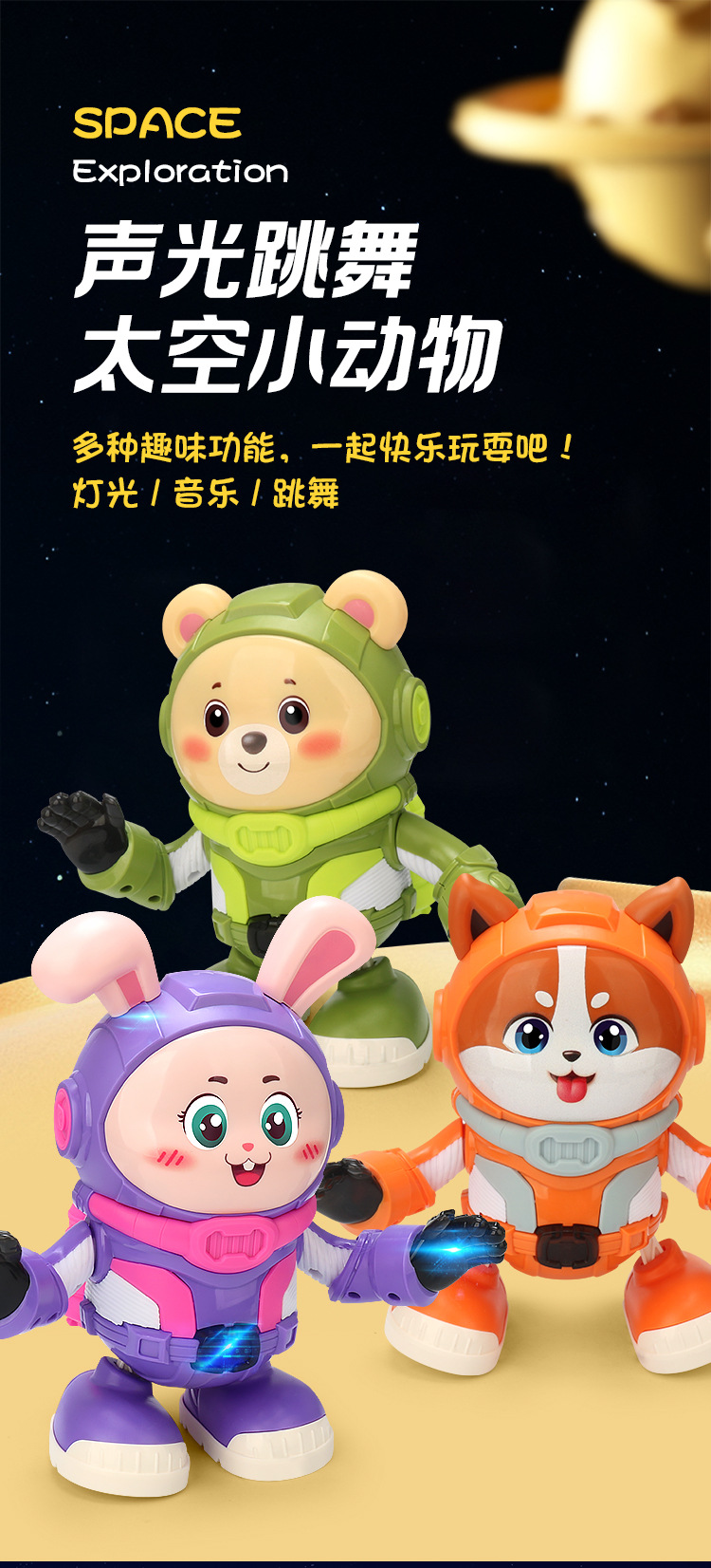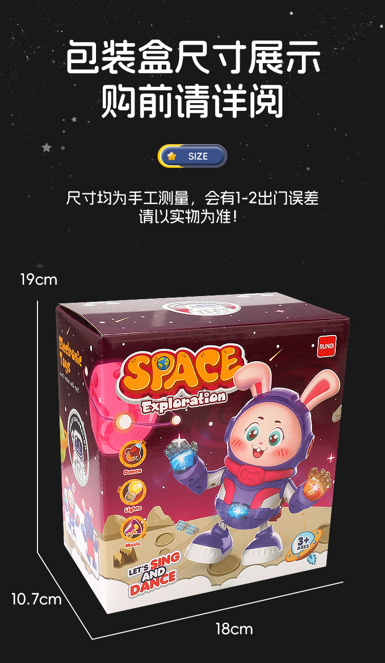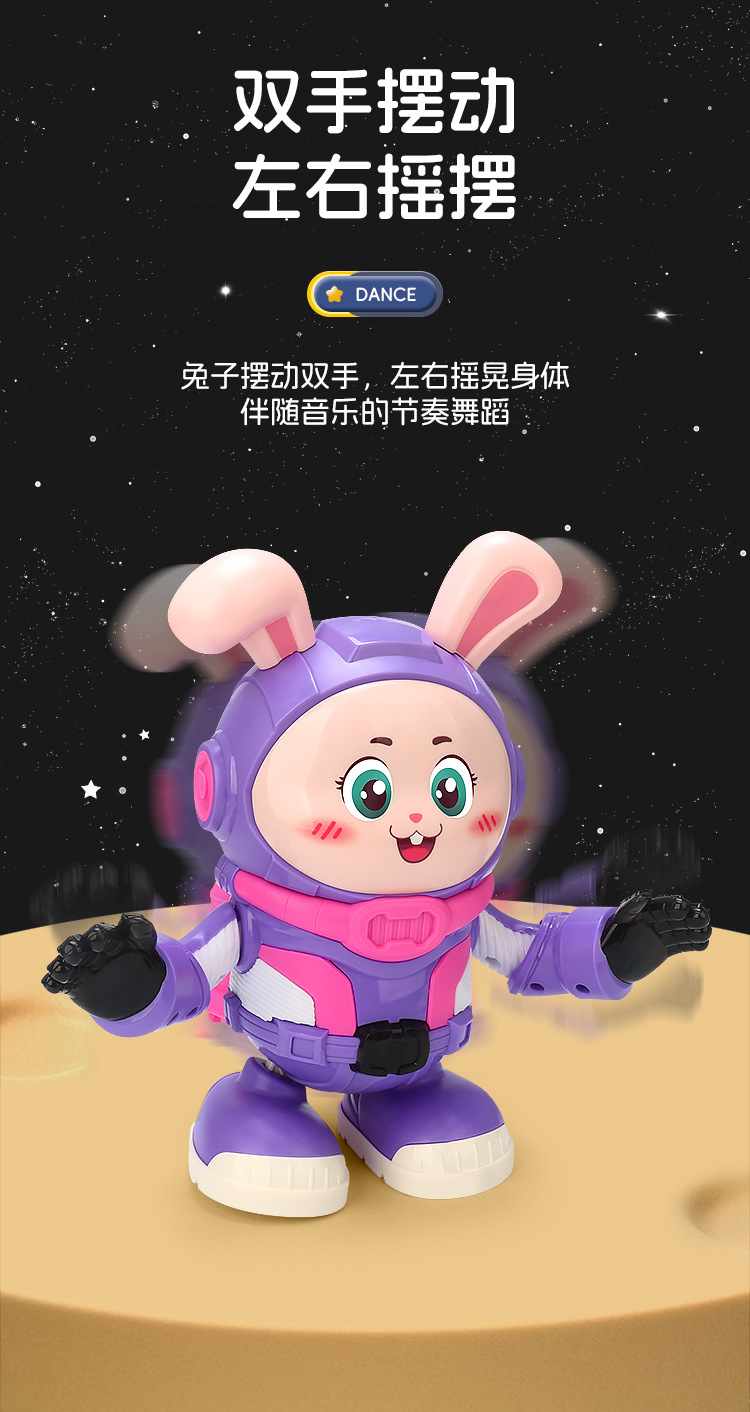 Transfronterizos eléctricos divertidos bailar conejos espaciales música luces oscilantes pequeñas muñecas eléctricas muñecas juguetes para niños mayoristas