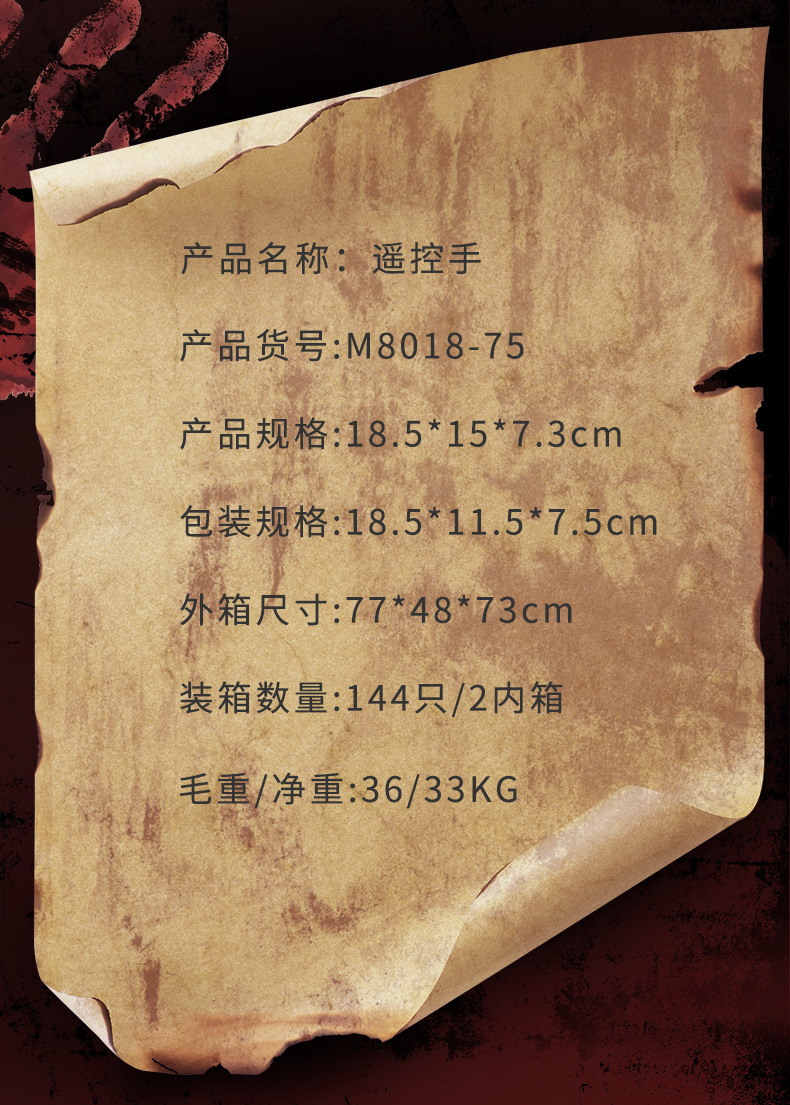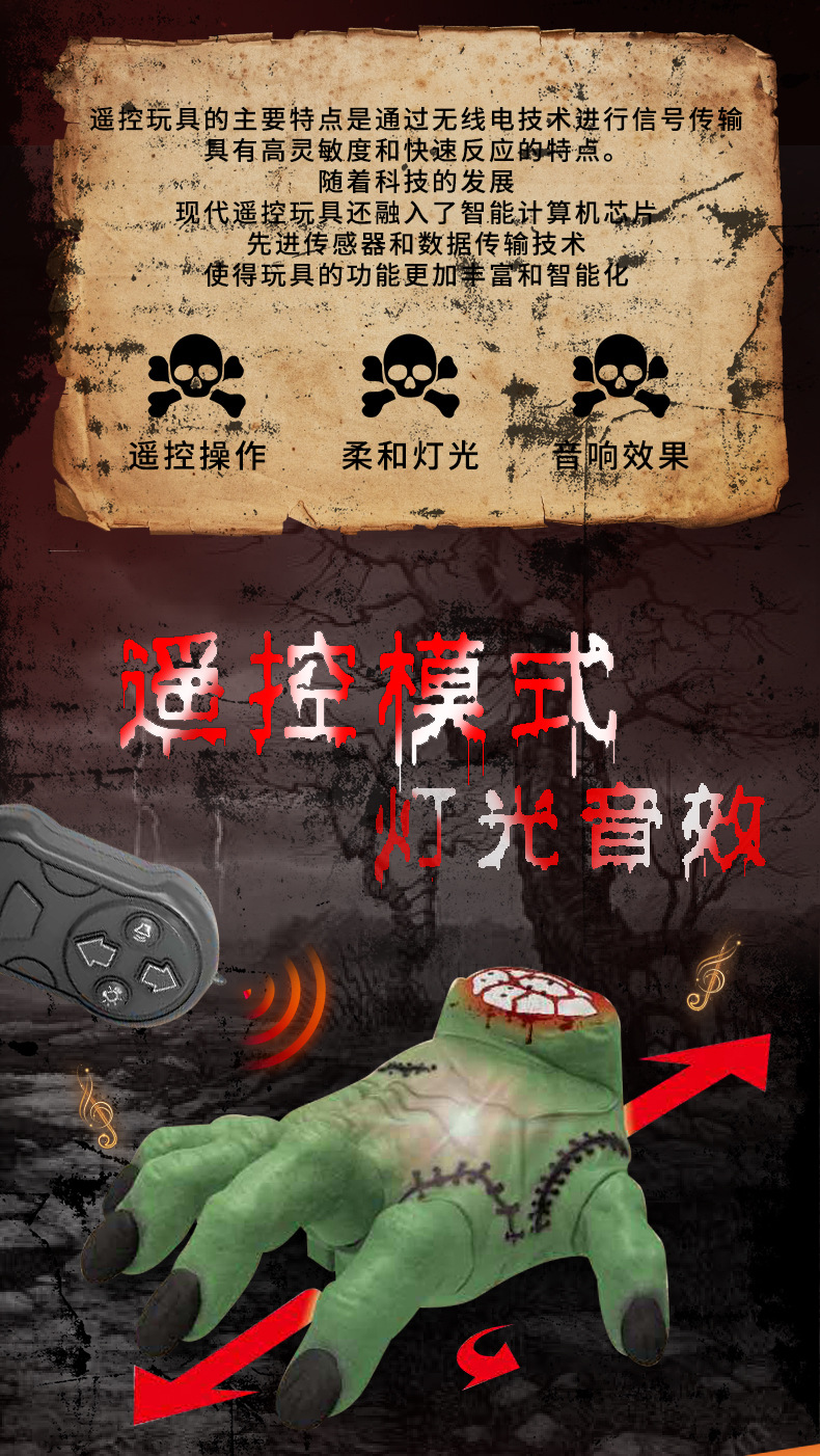 Carnaval de Halloween de comercio exterior transfronterizo control remoto eléctrico palma de mano mano de parodia de mano fantasma creatividad para hacer props de terror