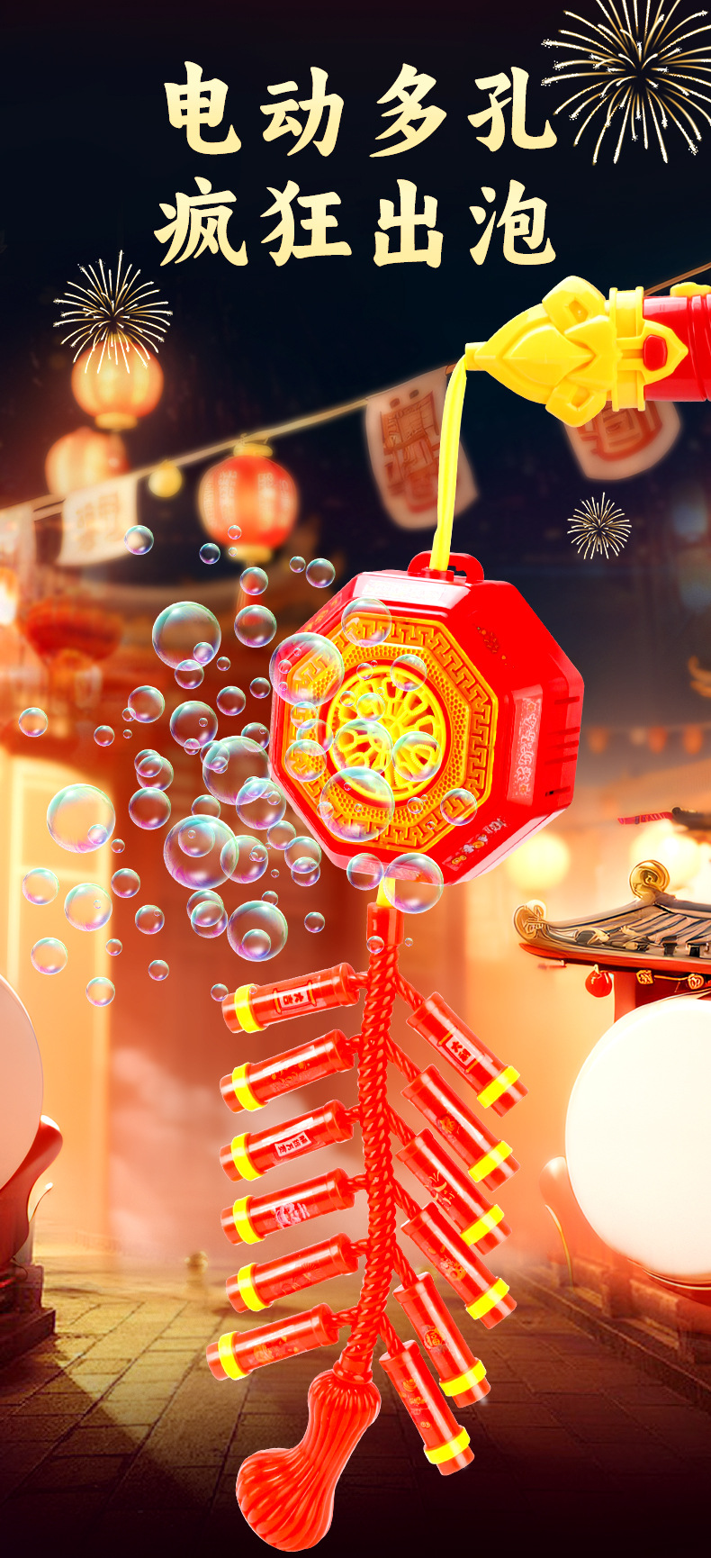 2025 Año Nuevo fuegos artificiales burbujas máquina de música iluminación petardos regalos de burbujas automáticos regalos para niños