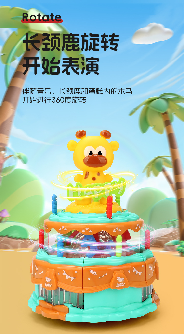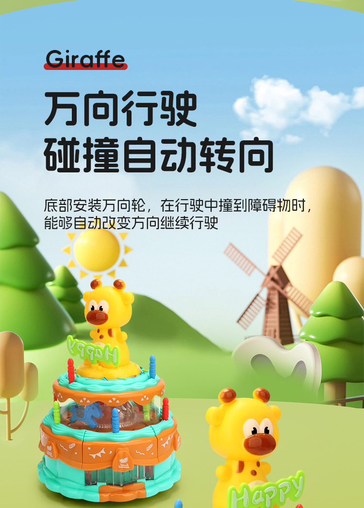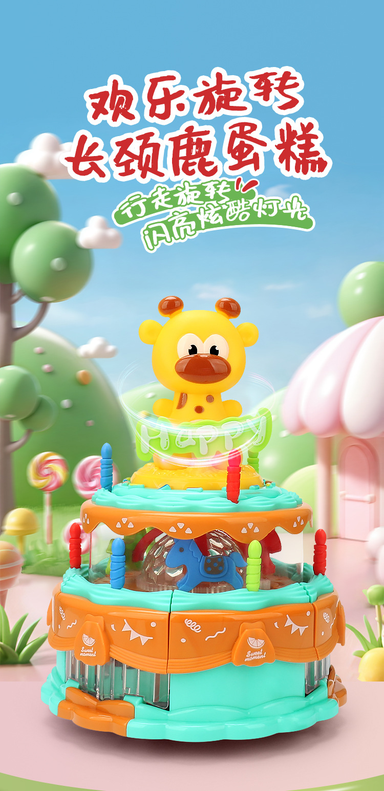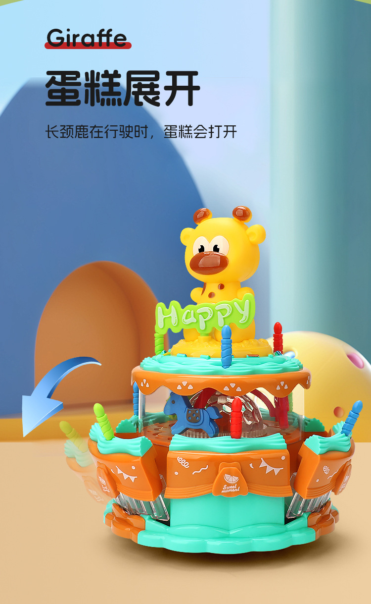 Nuevo producto eléctrico universal dibujos animados girafa simulación de pastel de música iluminación pastel de cumpleaños juguetes para niños