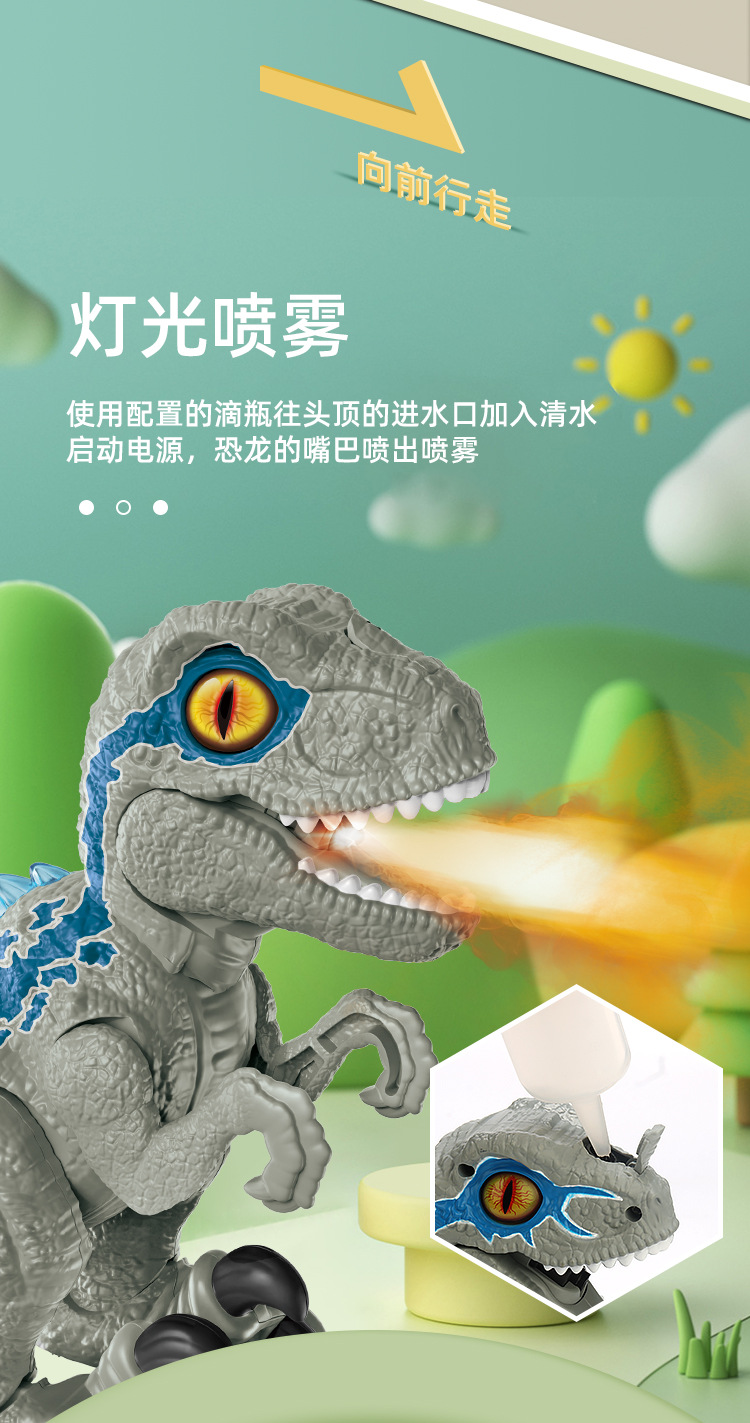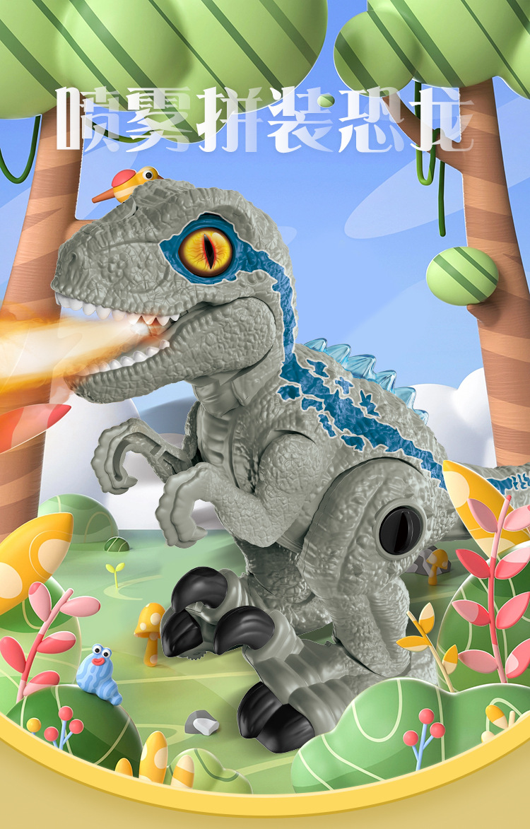 Aerosol eléctrico Raptor modelo de simulación de dinosaurio música luz caminando desmontaje dinosaurio puesto de juguete al por mayor