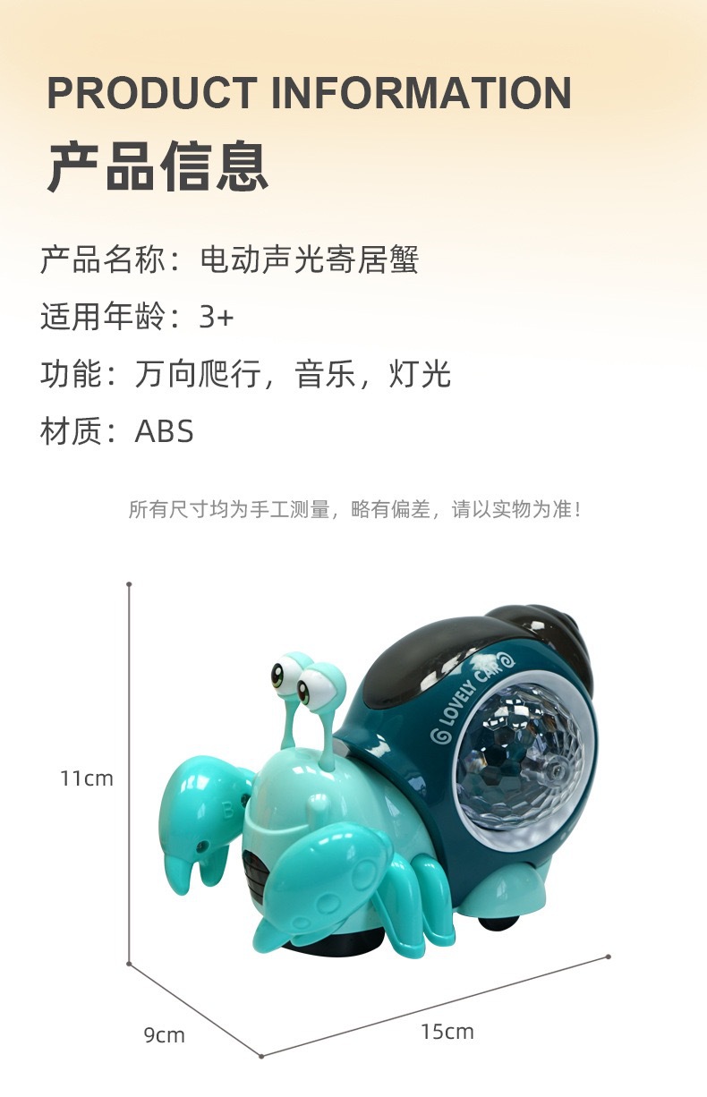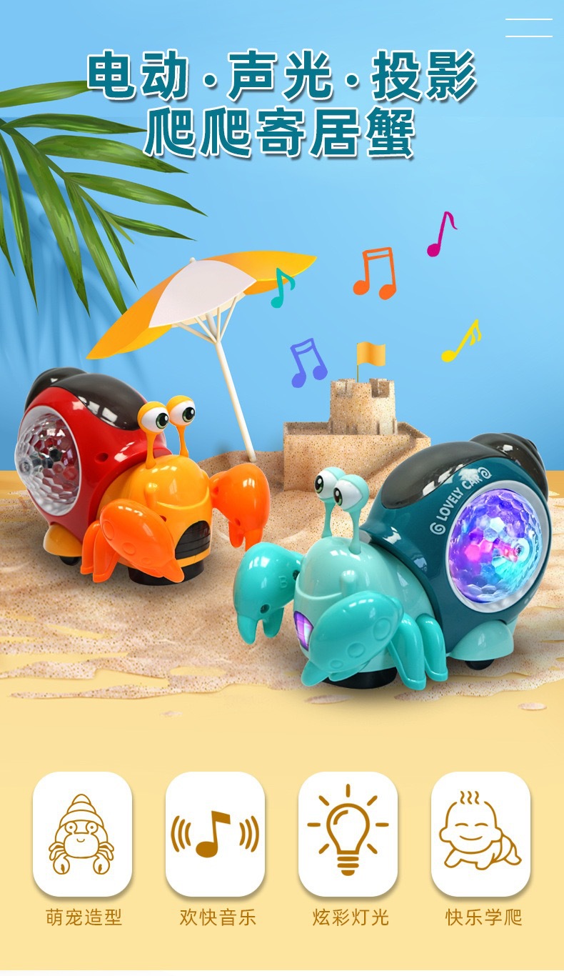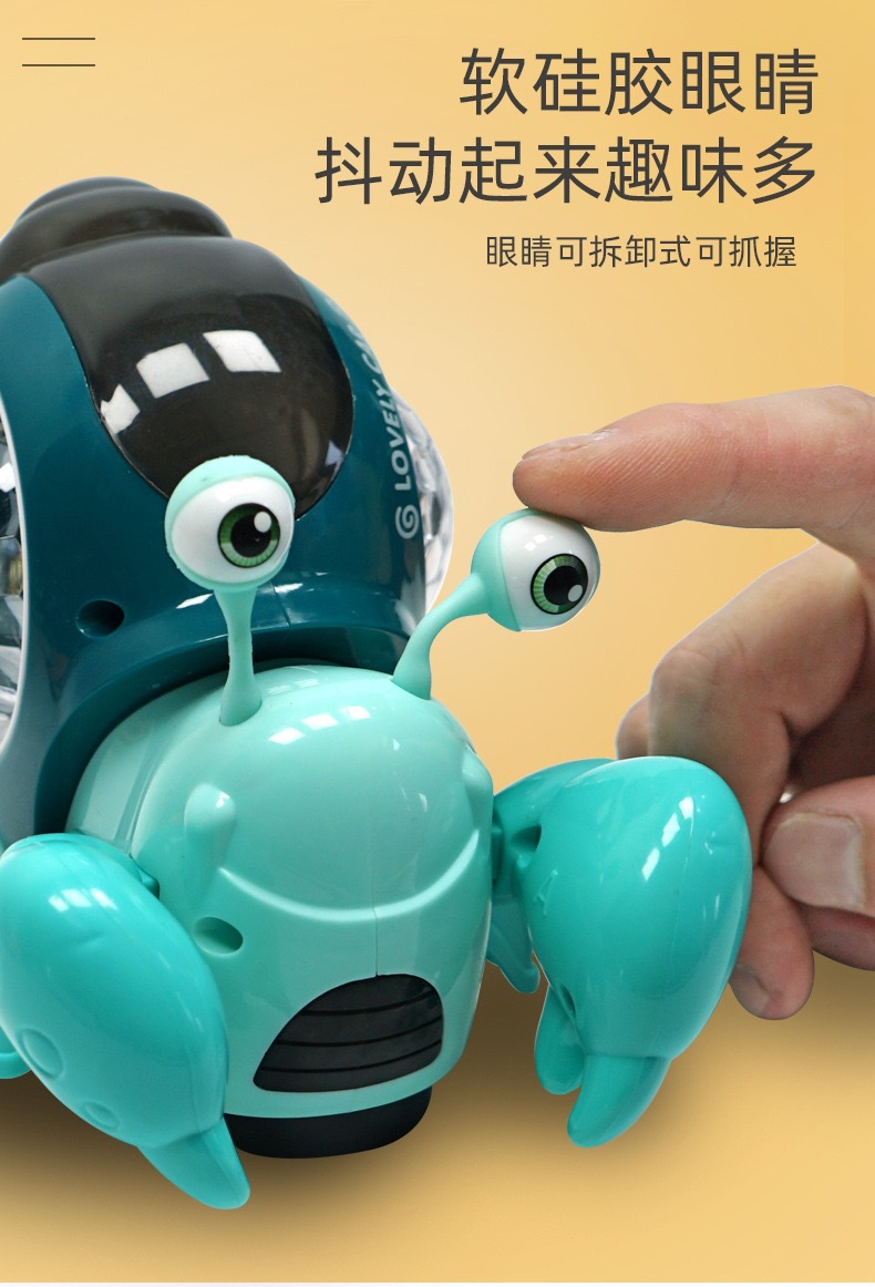Explosiones transfronterizas juguetes eléctricos universales caminando evasión de obstáculos asintiendo proyección sonora divertida cangrejo juguetes para niños al por mayor
