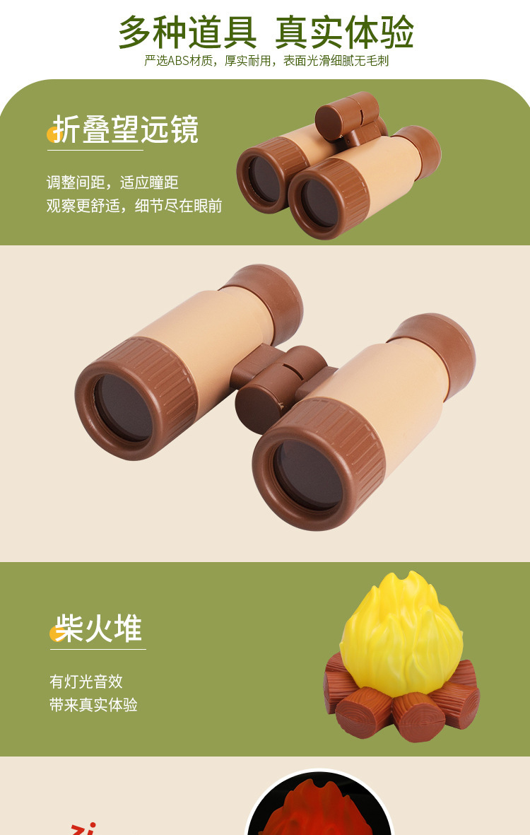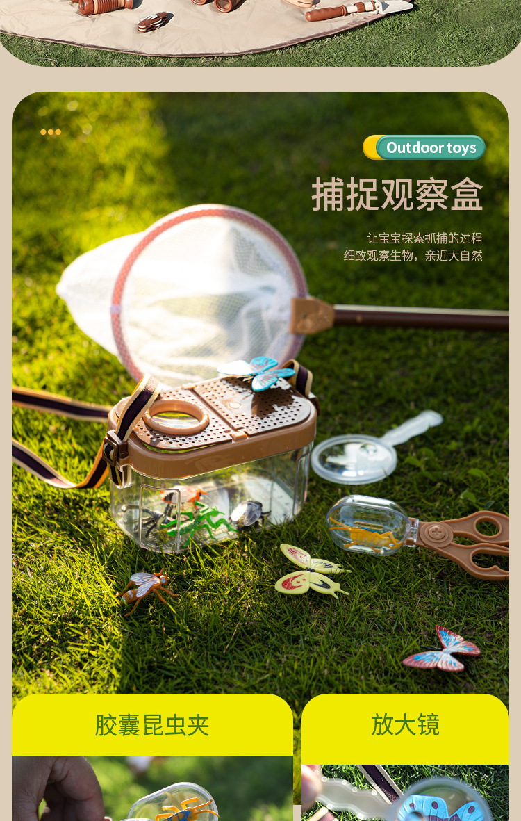 Transfronterizos niños camping set insecto caja telescopio trap net simulación al aire libre hogar picnic cubiertos juguetes