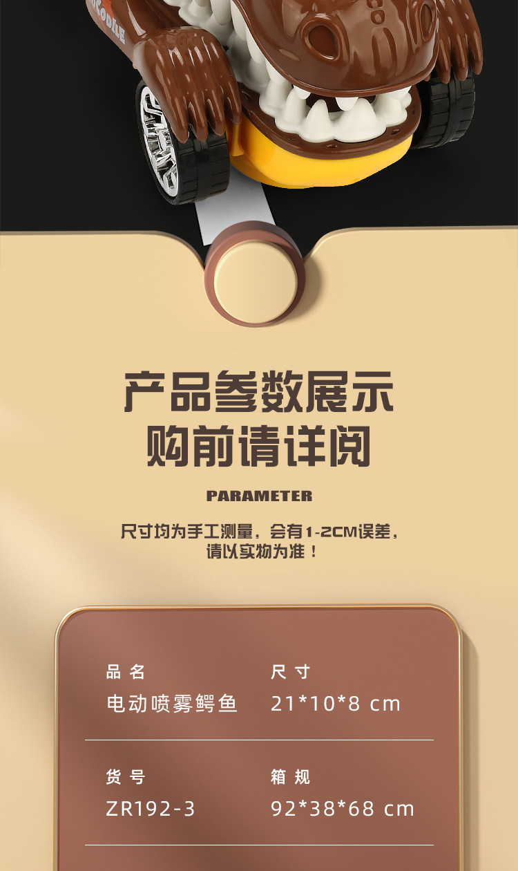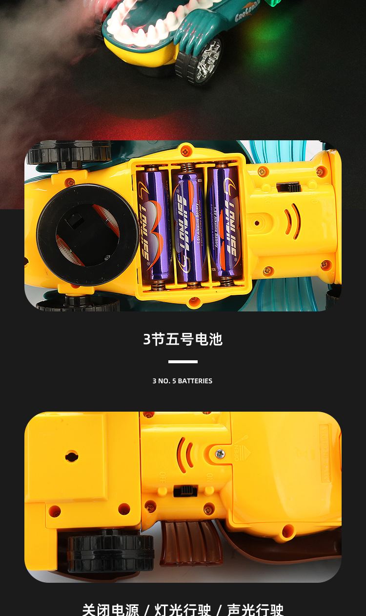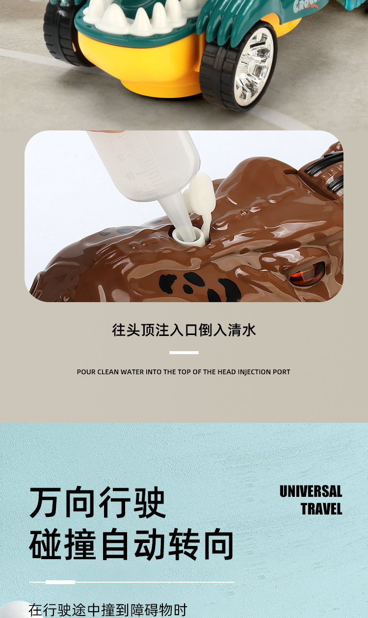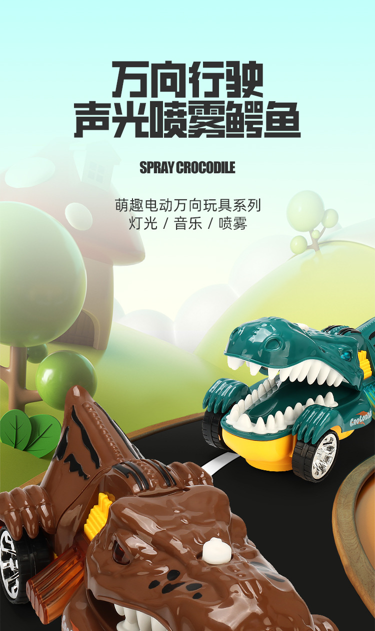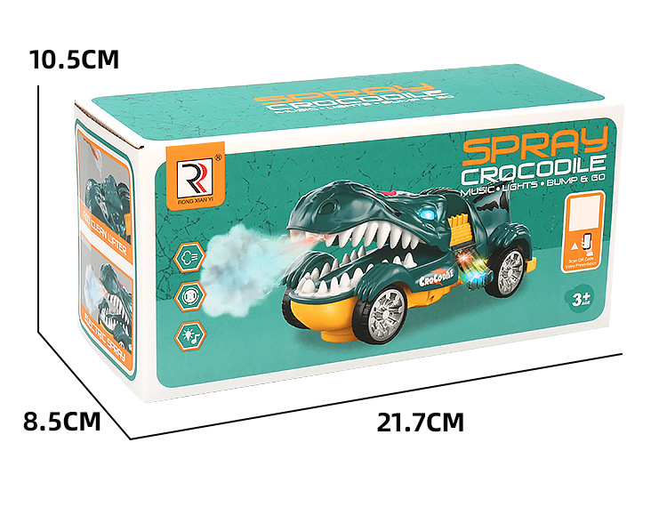 Nuevos productos eléctricos mecánicos cocodrilo carro de guerra universal música iluminación spray cocodrilo coche de juguete para niños puzzle al por mayor