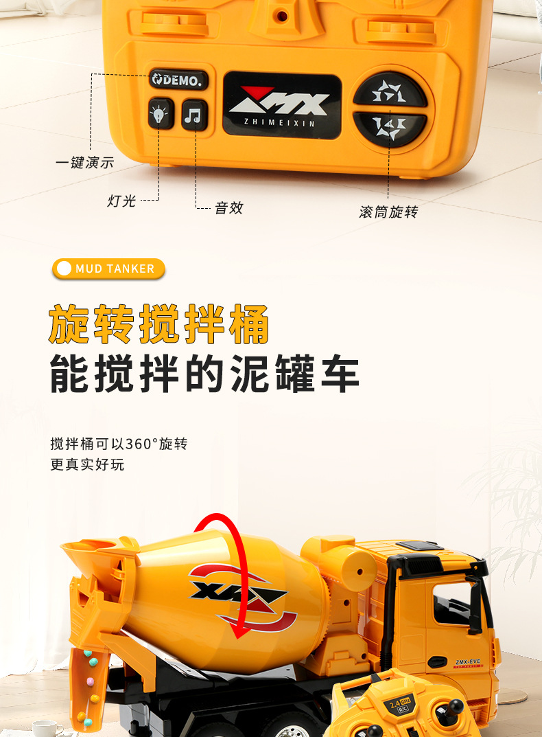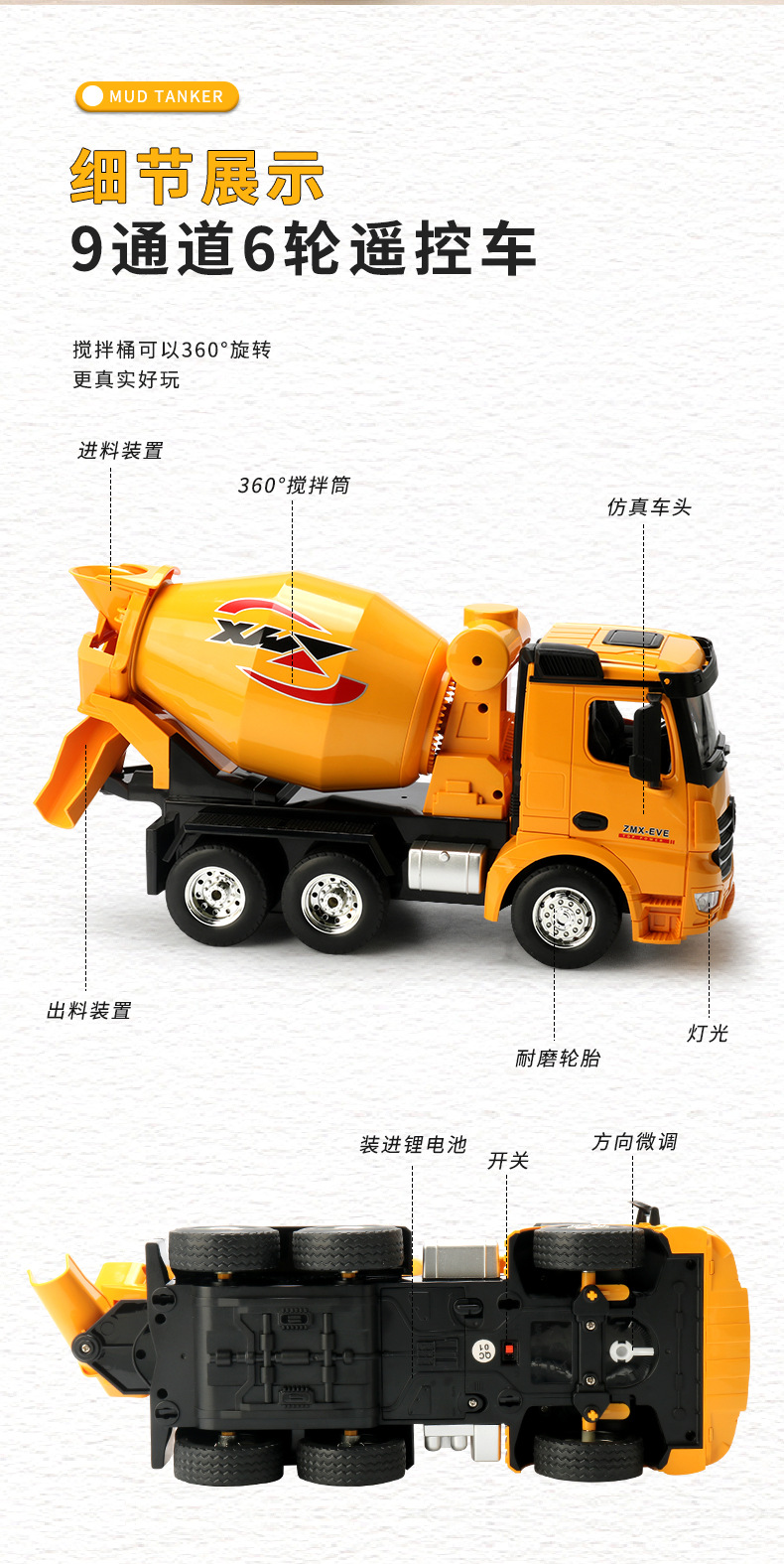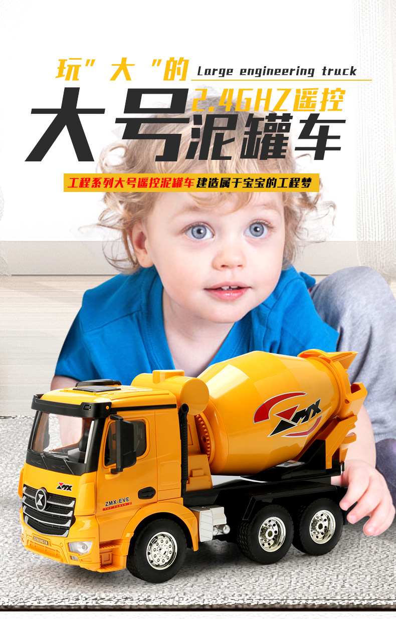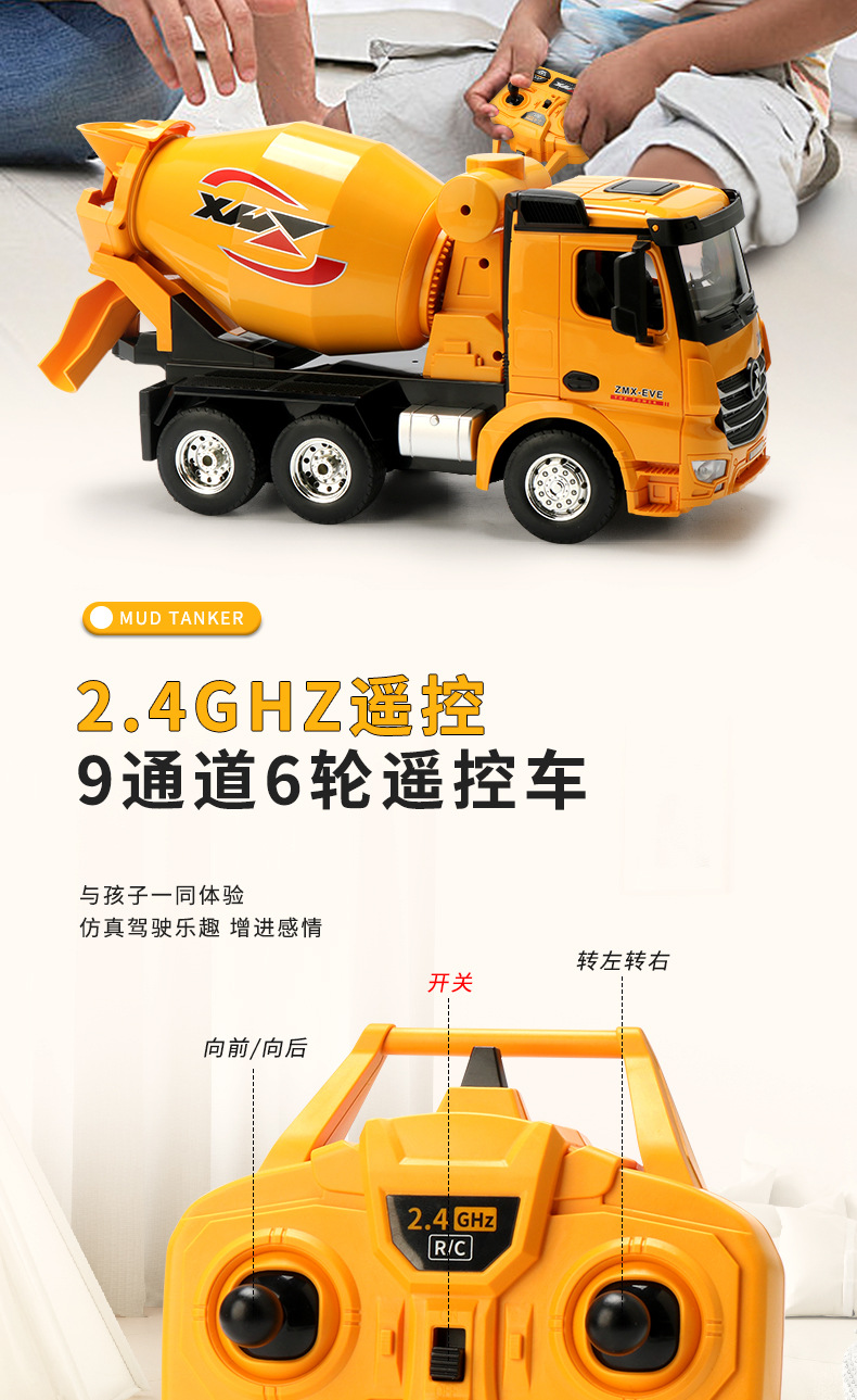 Gran camión de barro de control remoto de seis ruedas para niños 9 canales 2.4G modelo de simulación de vehículo de ingeniería de control remoto para niños