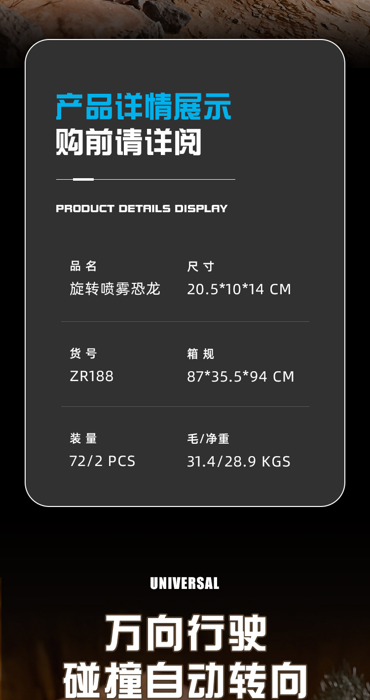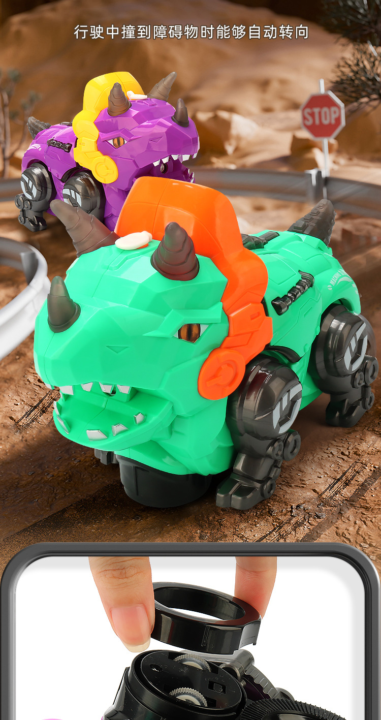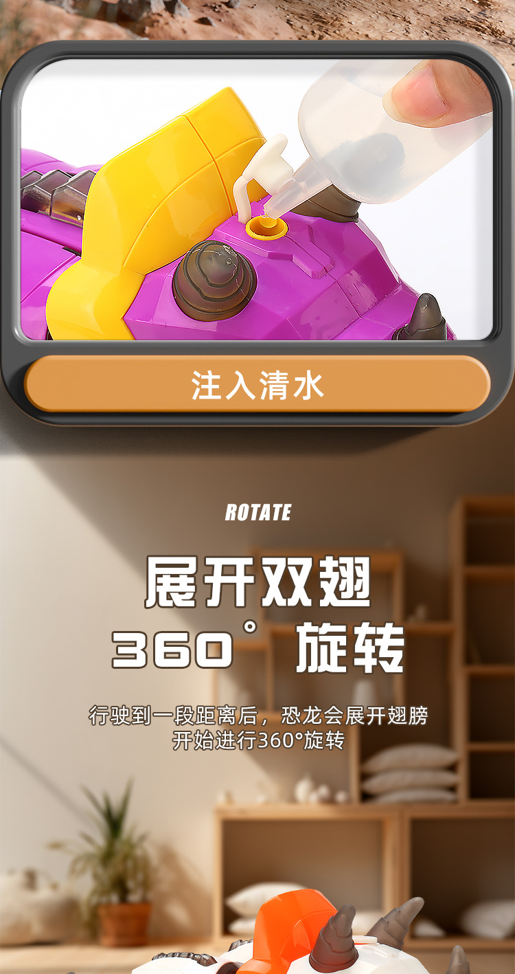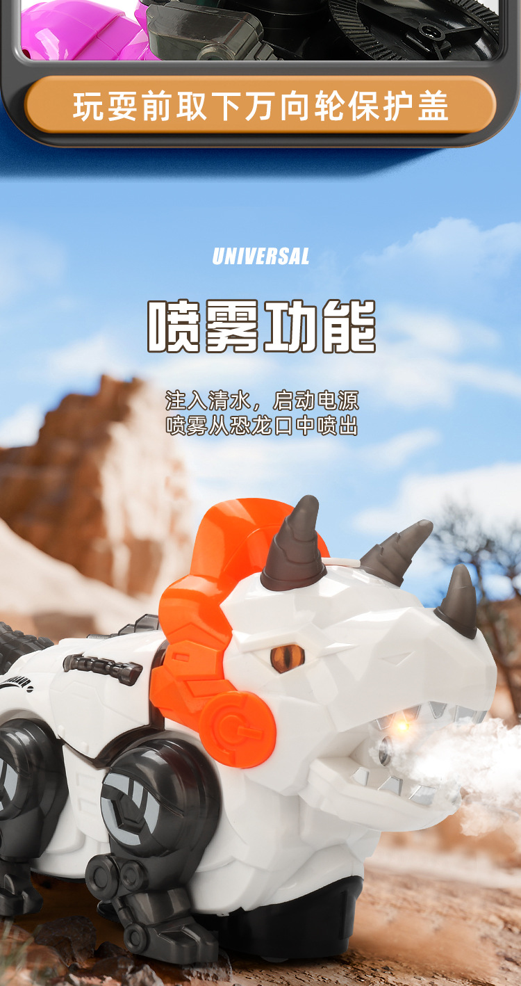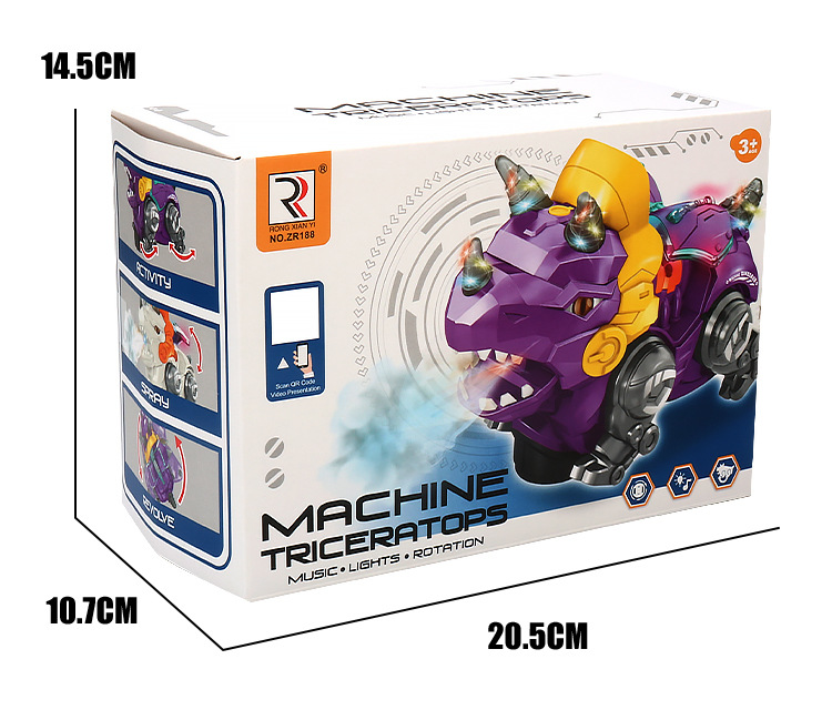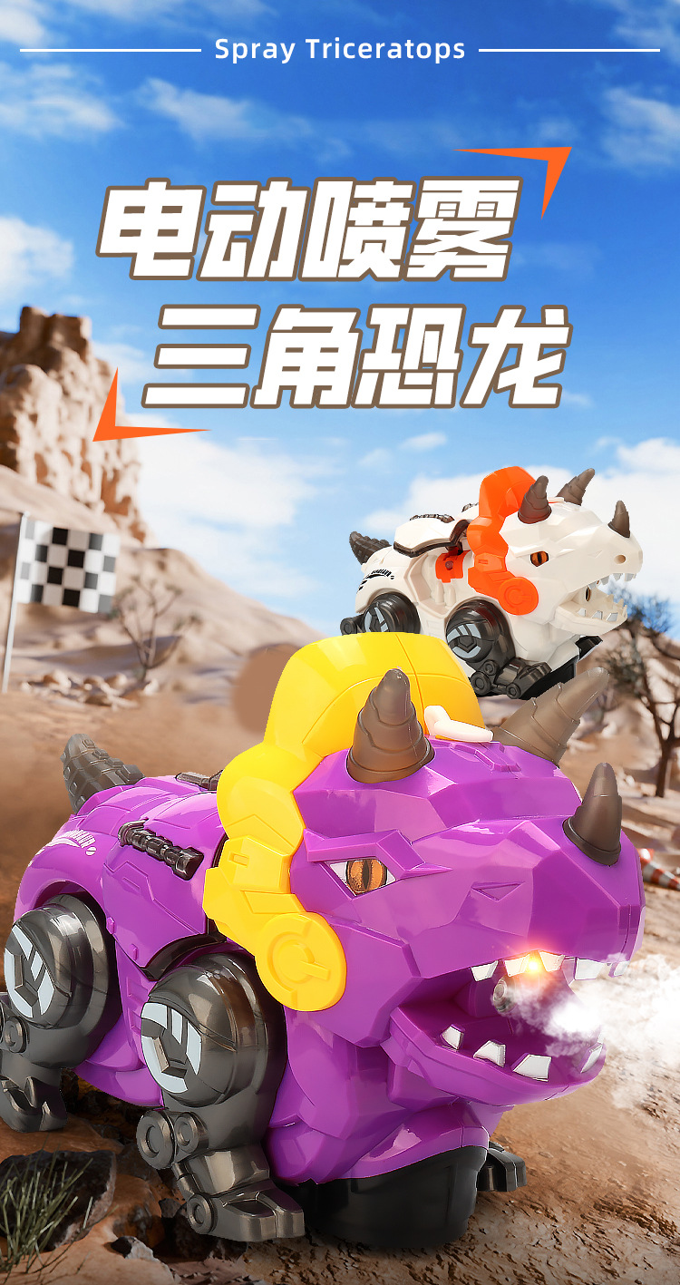 Juguetes de dinosaurios de simulación de pulverización eléctrica para niños acrobacias giratorias triceratón música iluminación juguetes para niños