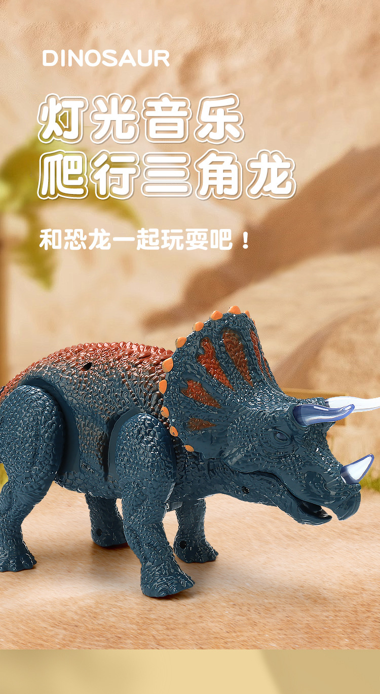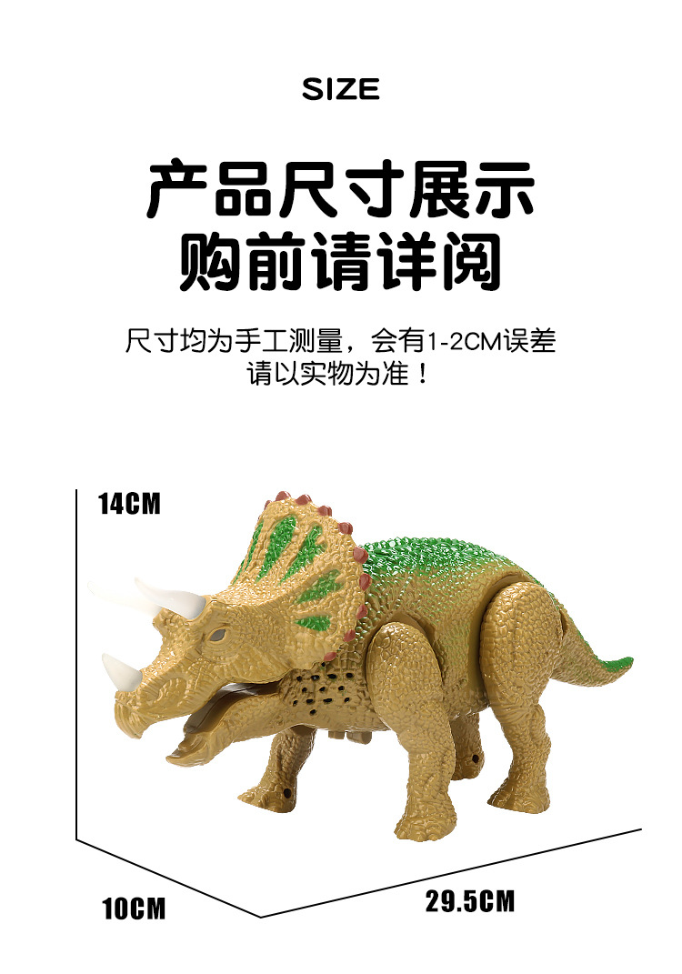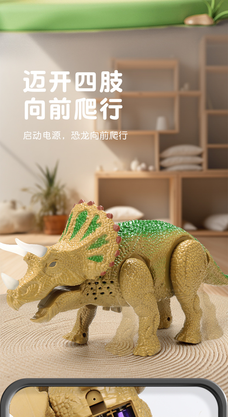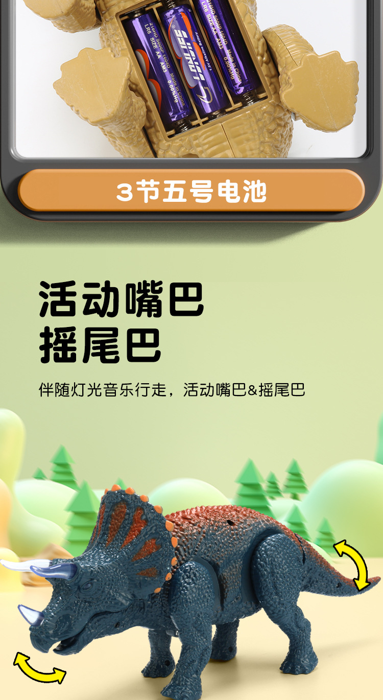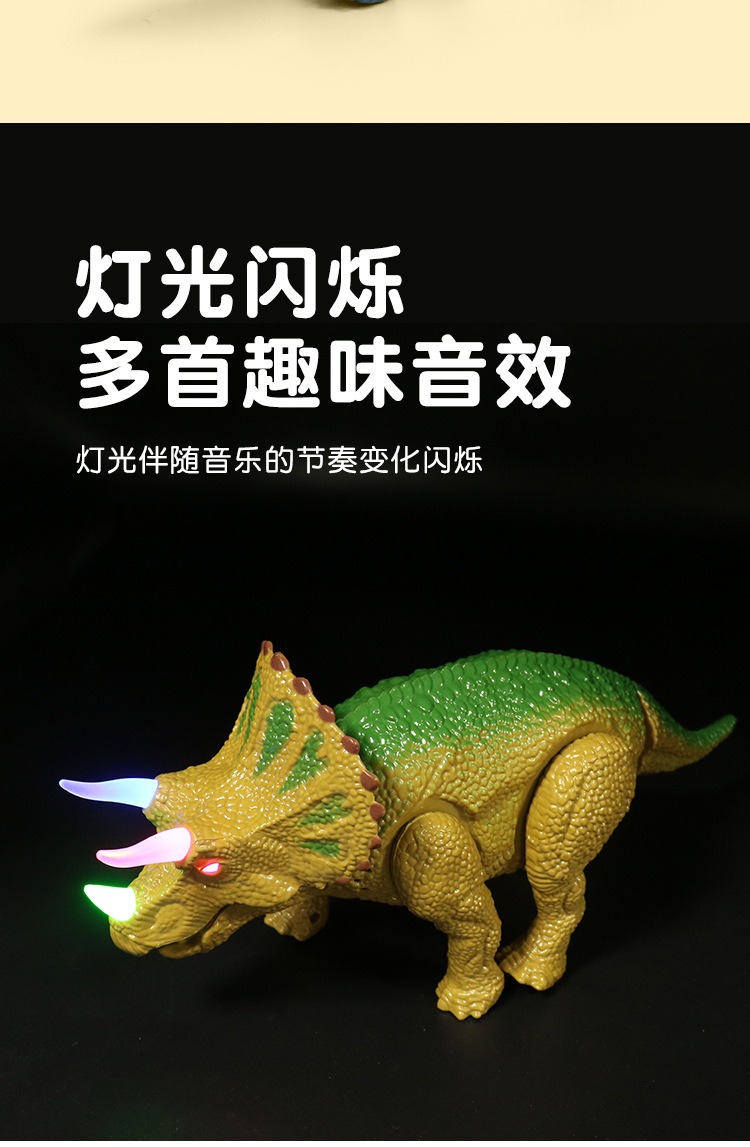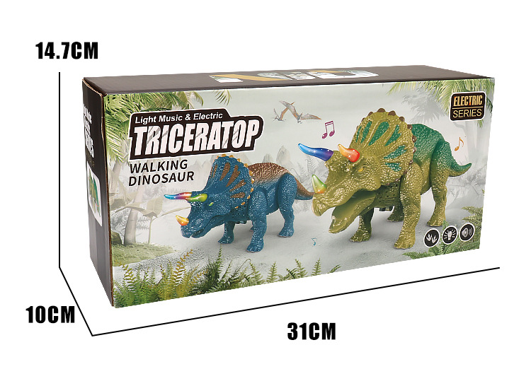 Simulación eléctrica transfronteriza de juguetes de dinosaurios luz de música caminando automáticamente triceratós niños puzzle al por mayor