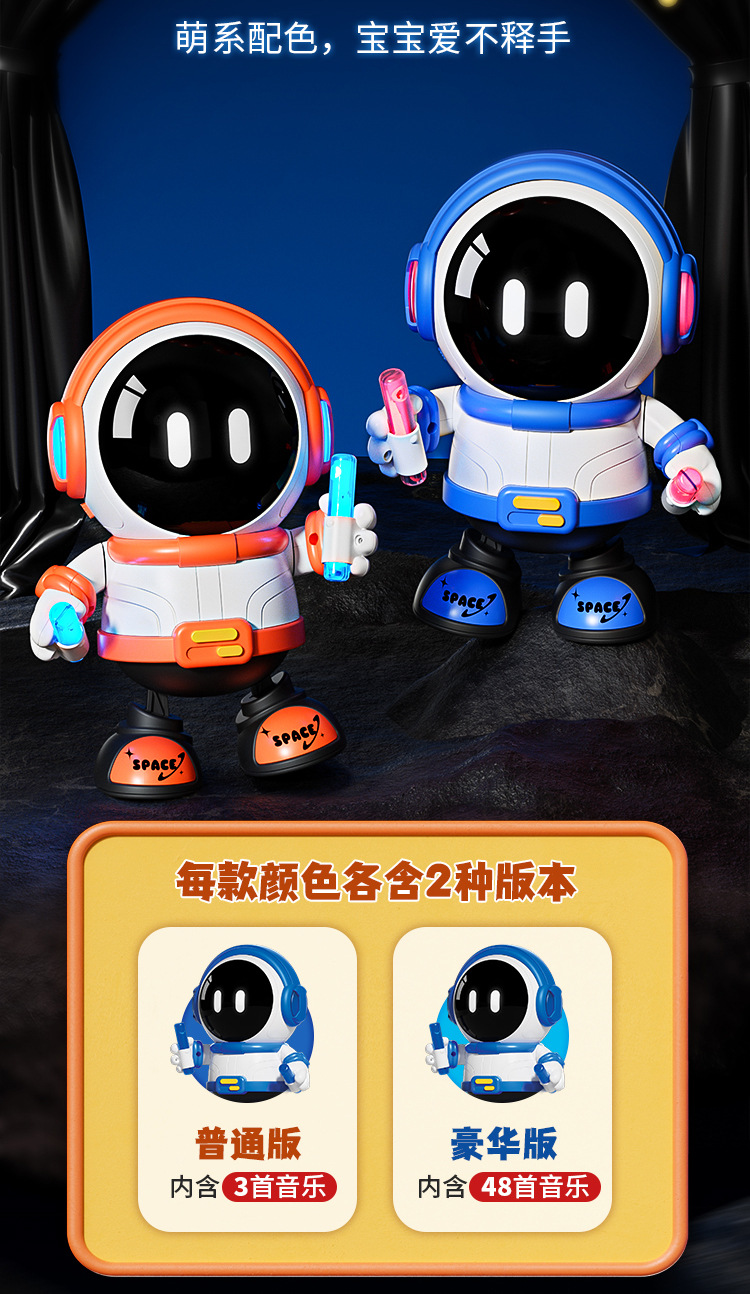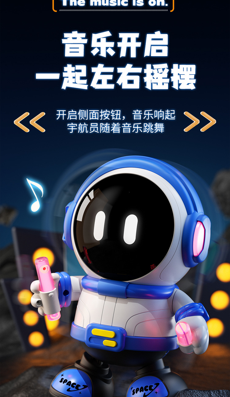 Nuevos productos de danza eléctrica rock astronauta música iluminación astronauta danza robot juguetes para niños al por mayor