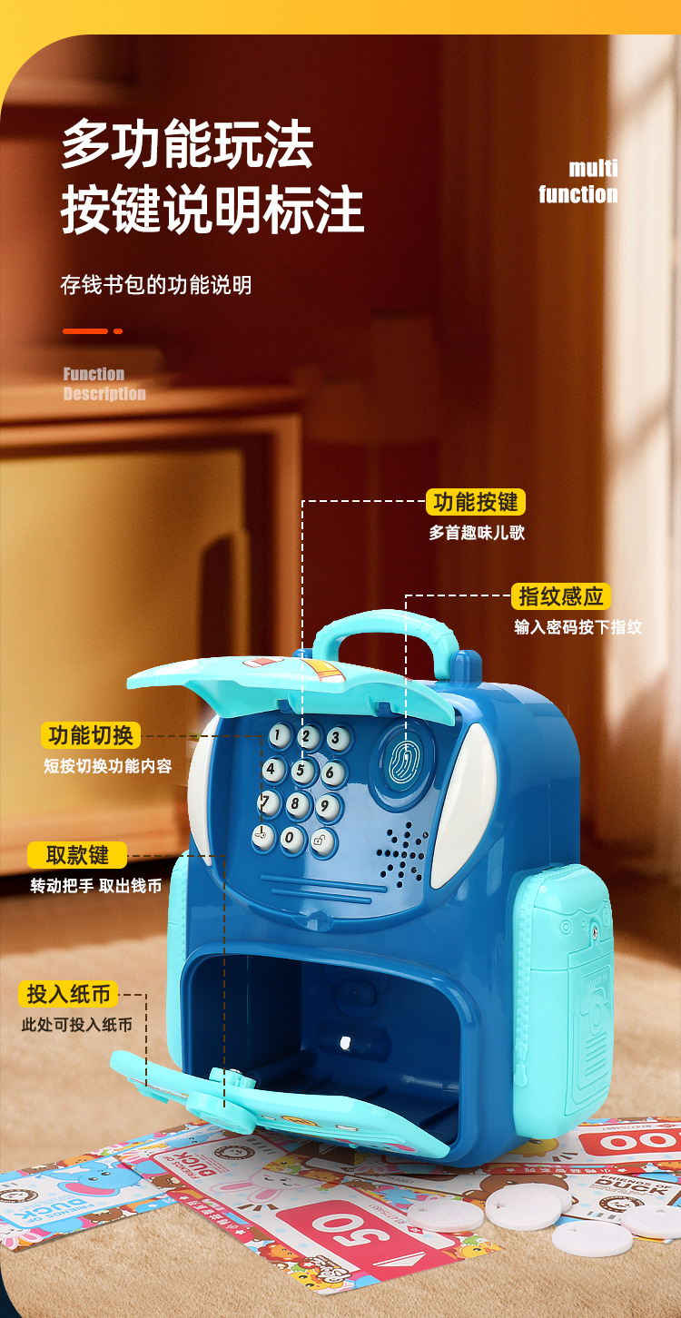 Mochila de dibujos animados para niños, caja fuerte, caja de seguridad
