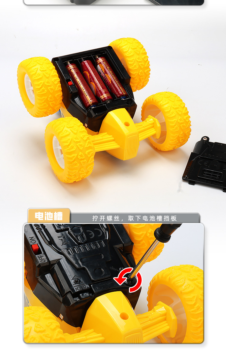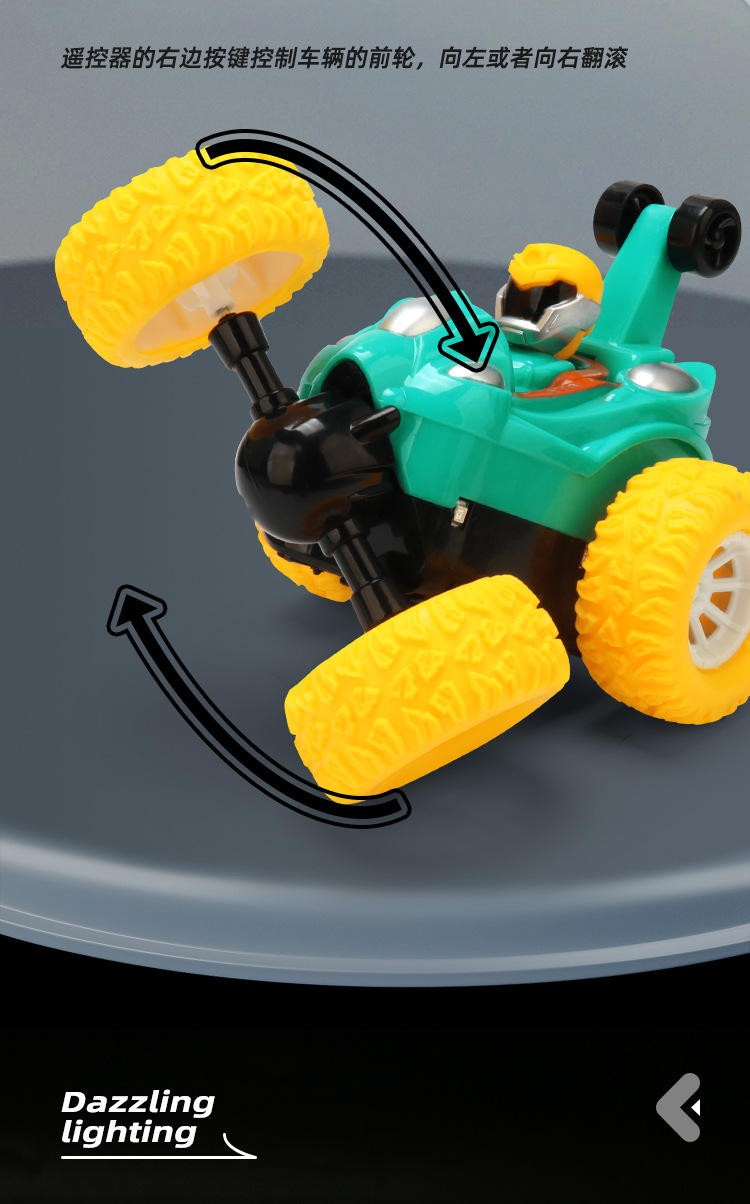 Transfronterizos niños 2.4G cuatro vías control remoto carro de volcado luces cool rodando truco coche de control remoto muchacho al por mayor