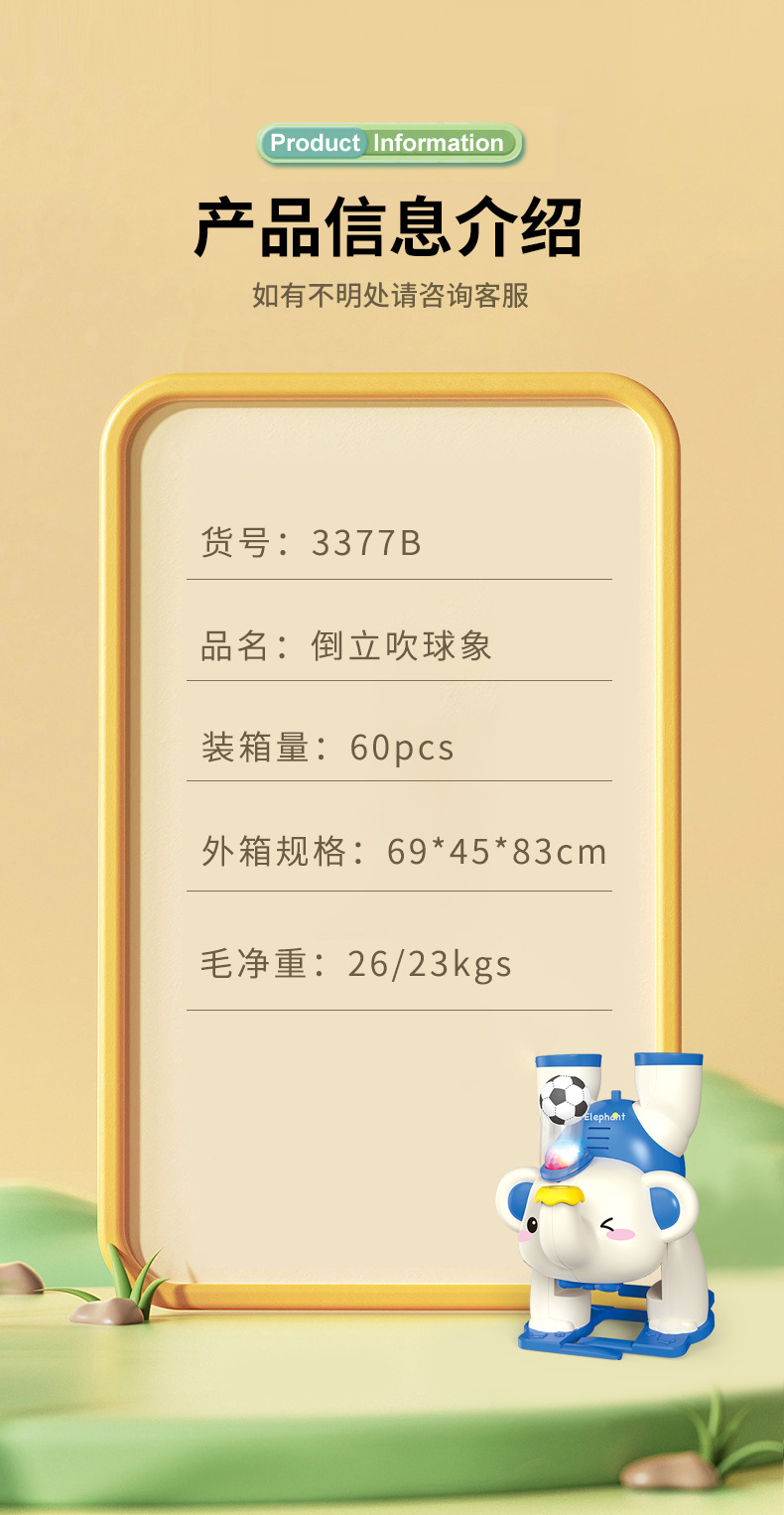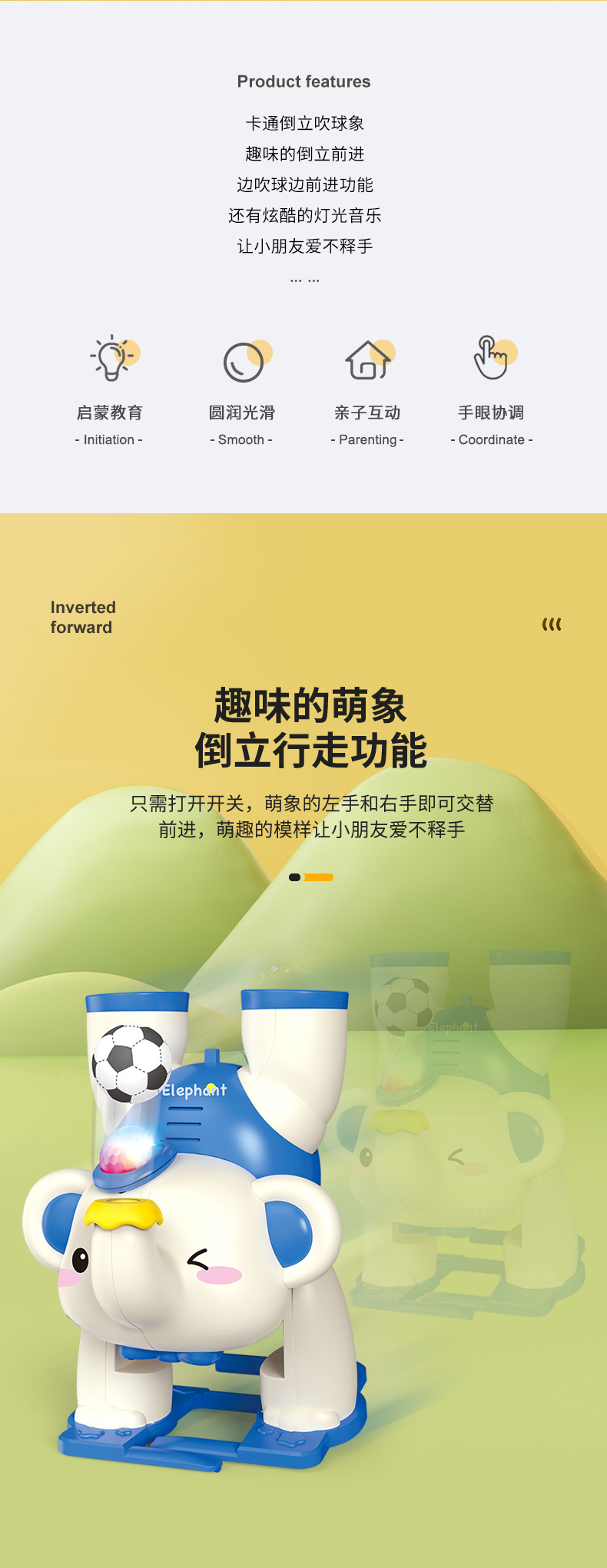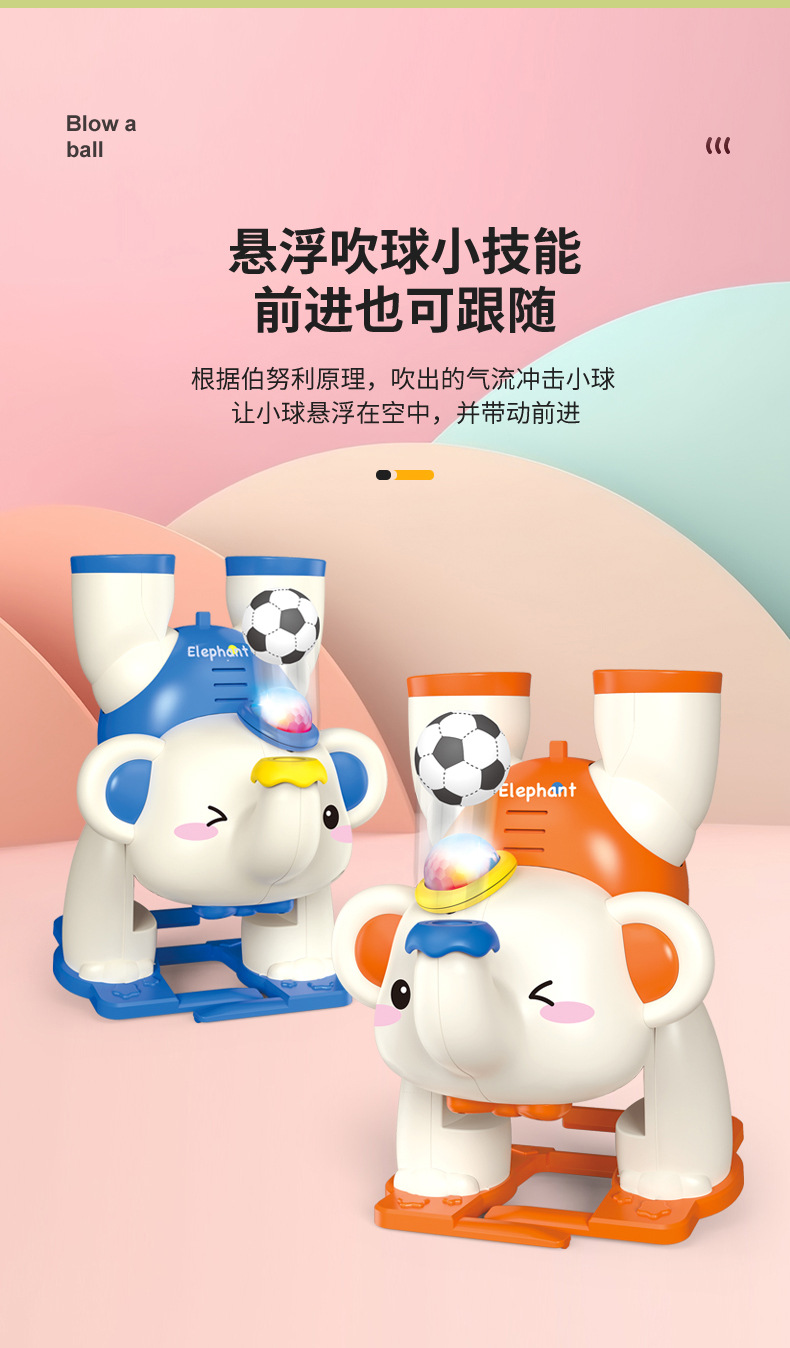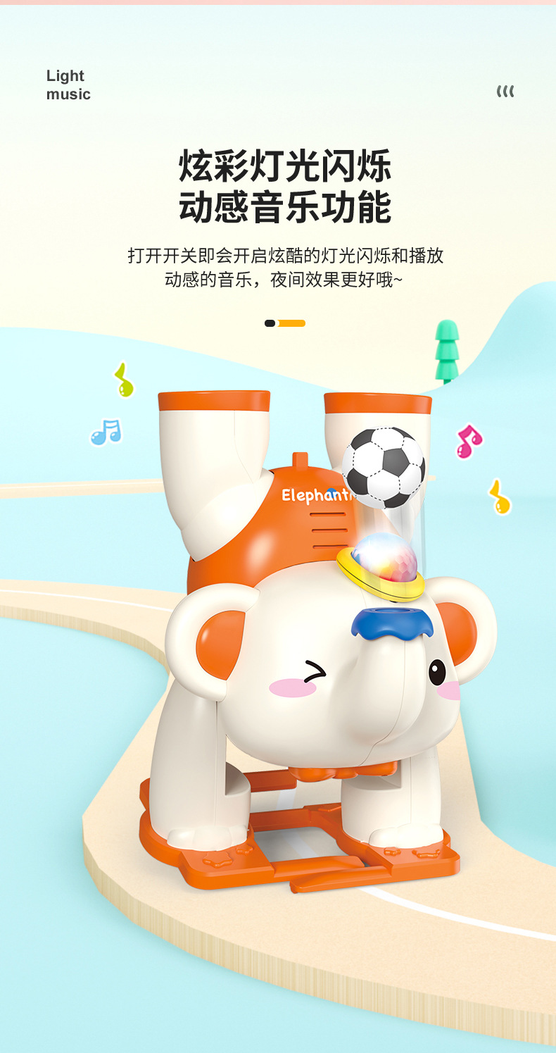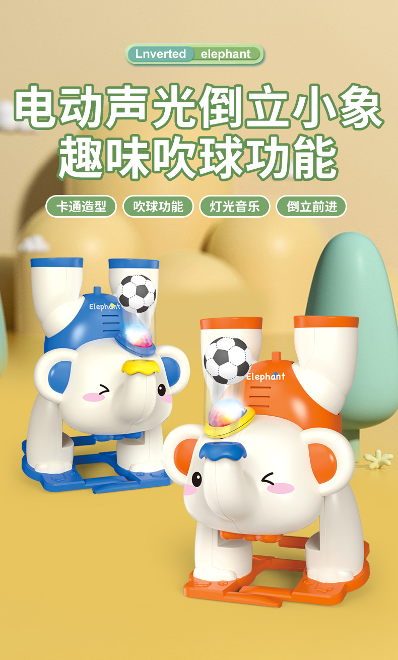 Bola de soplado para caminar invertida eléctrica, elefante bebé, luz musical, dibujos animados, forma de animal, bola suspendida, juguete para niños