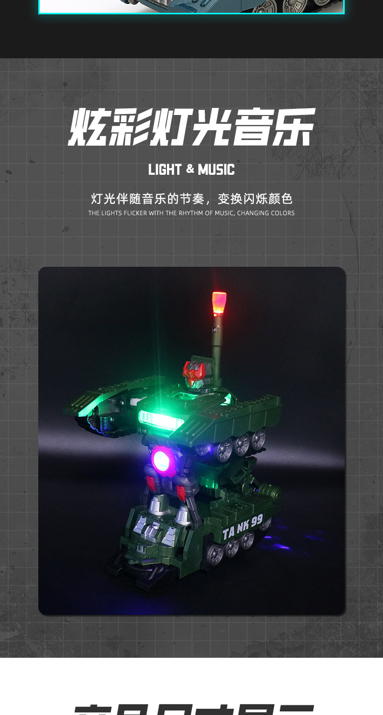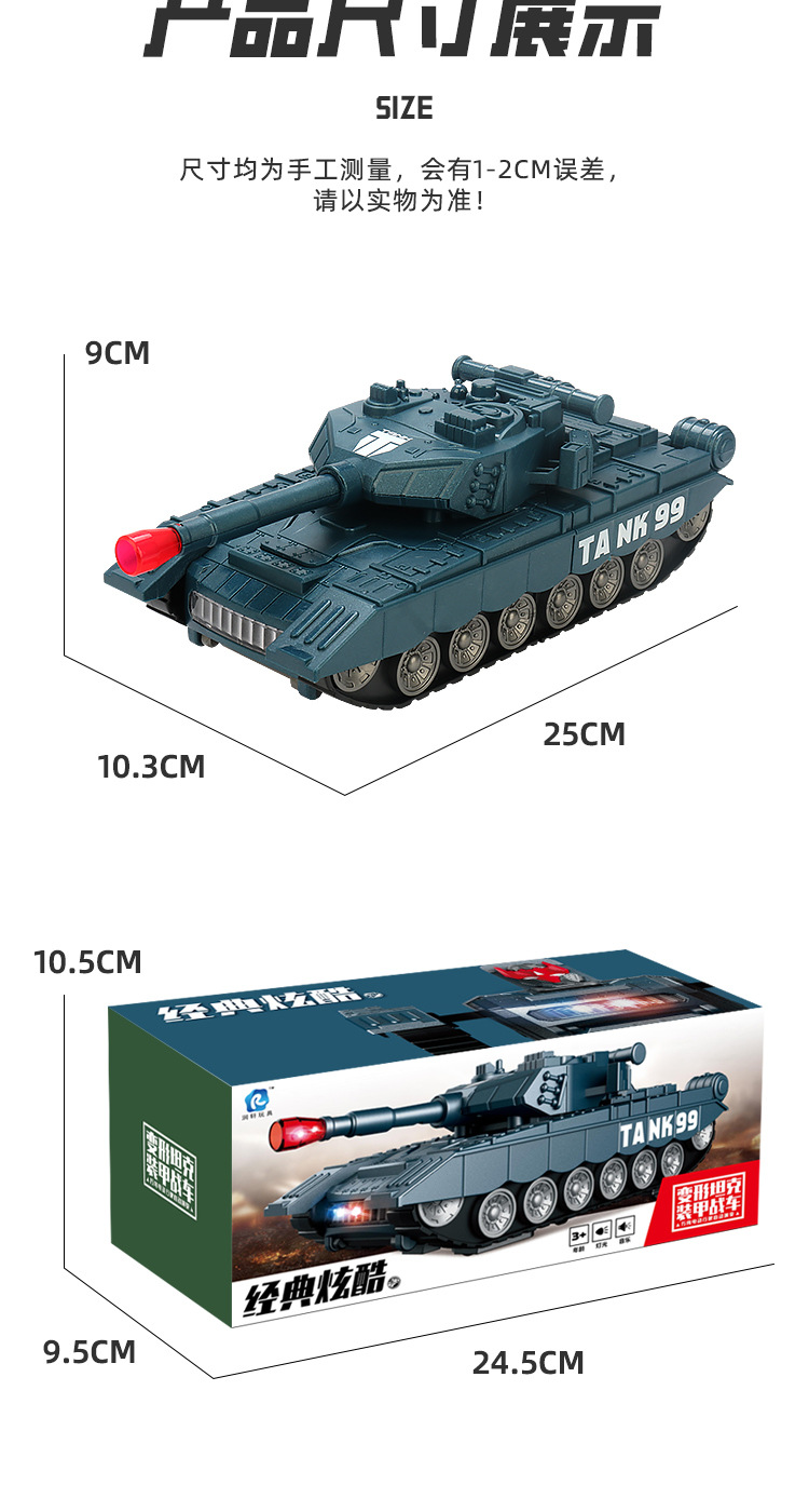 Tanque de pulverización universal eléctrica de vibración, automóviles de música, luces de deformación automática, automóviles de juguetes al por mayor