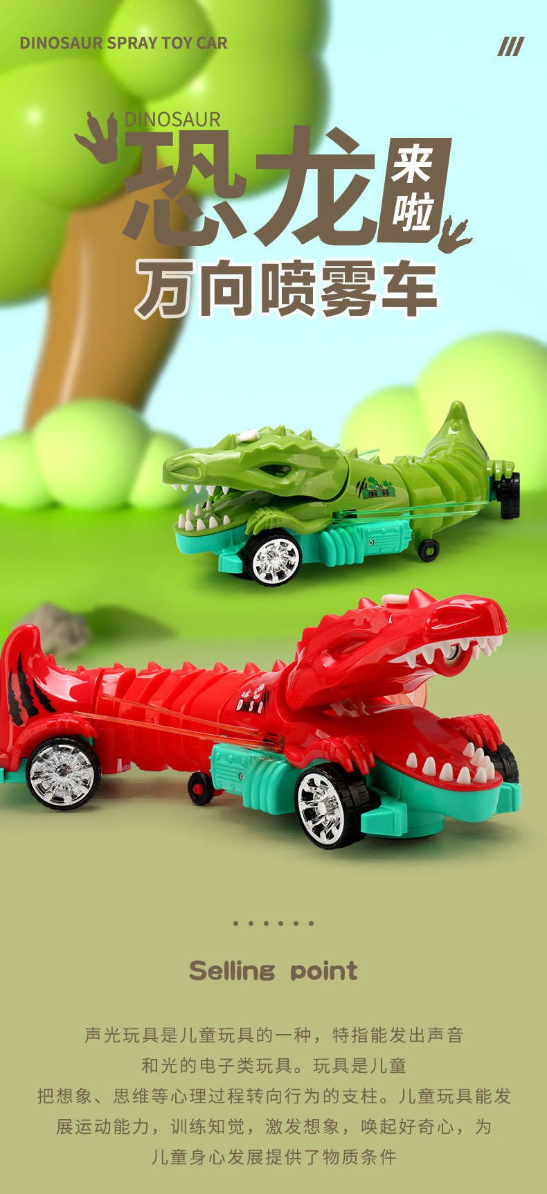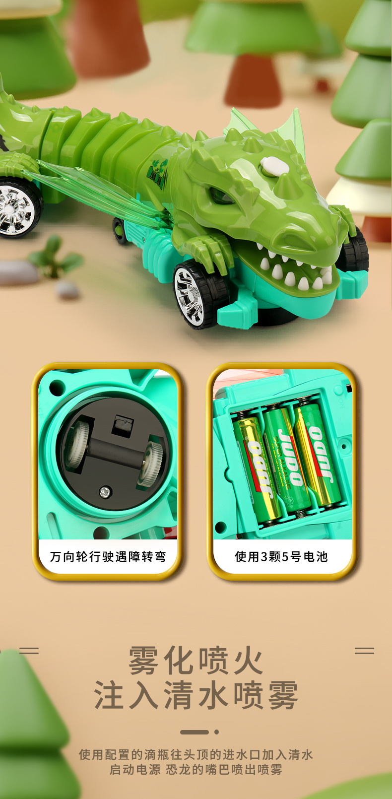 Amazon eléctrico universal spray dinosaurio coche de juguete música luces oscilante dragón simulador dinosaurio juguetes para niños