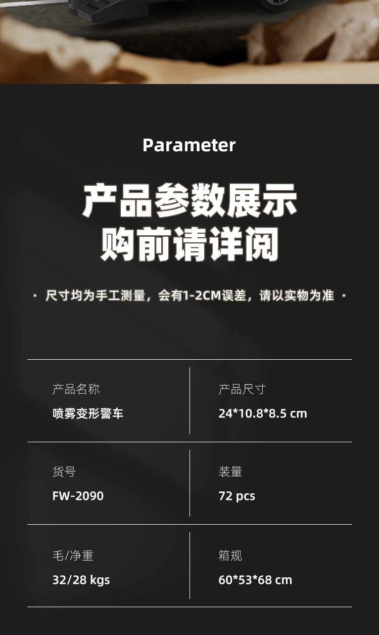 | Categoría del producto | Coche de policía deformado por pulverización |
