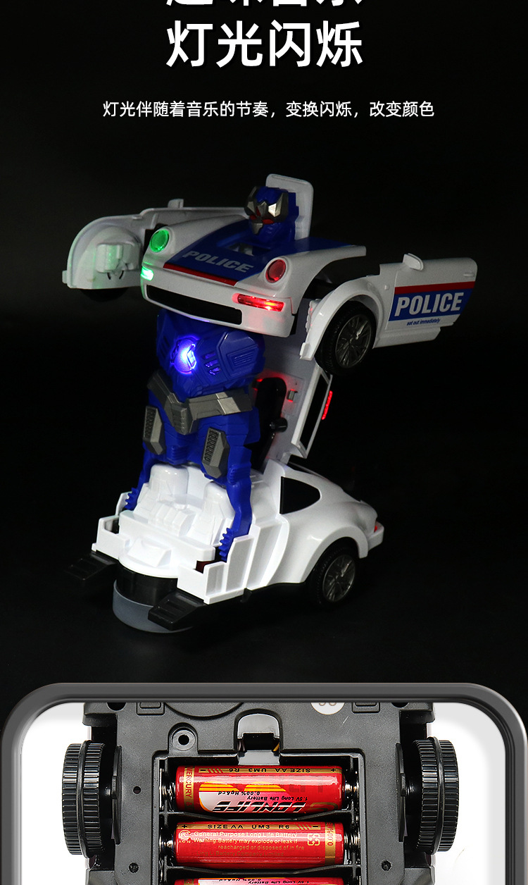 El mismo tipo de rociador eléctrico de deformación de automóvil de policía de música iluminación universal automóvil robot de deformación automática