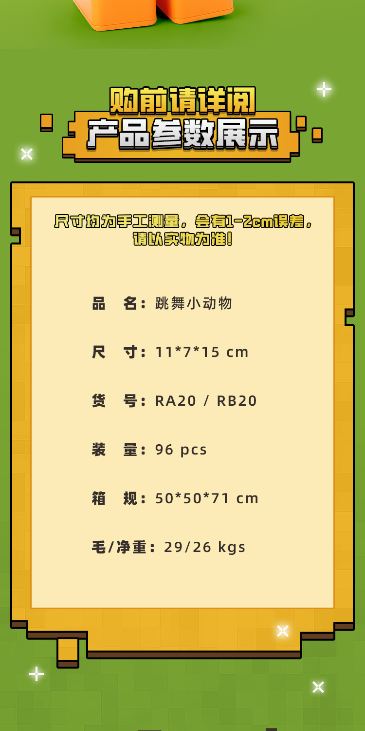 | Color | (Monkey) Robot Dancing Square, (Tiger) Robot Dancing Square |