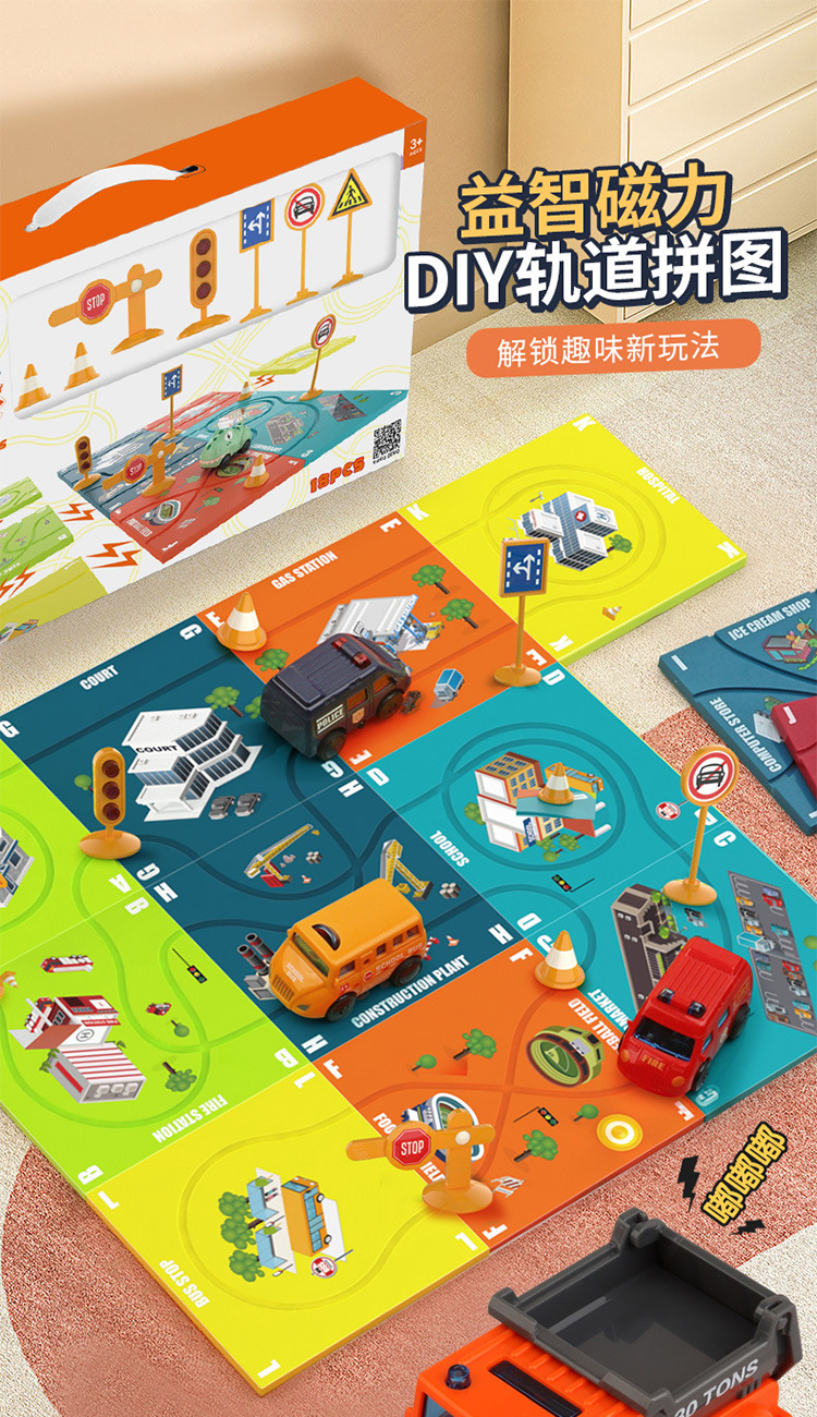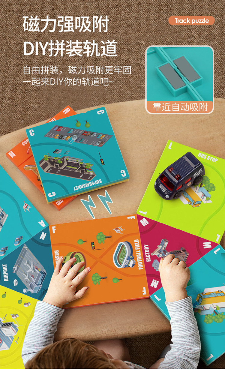 Tiktok niños educativos pista magnética coche fuego ingeniería vehículo DIY variedad rompecabezas eléctrico pista coche