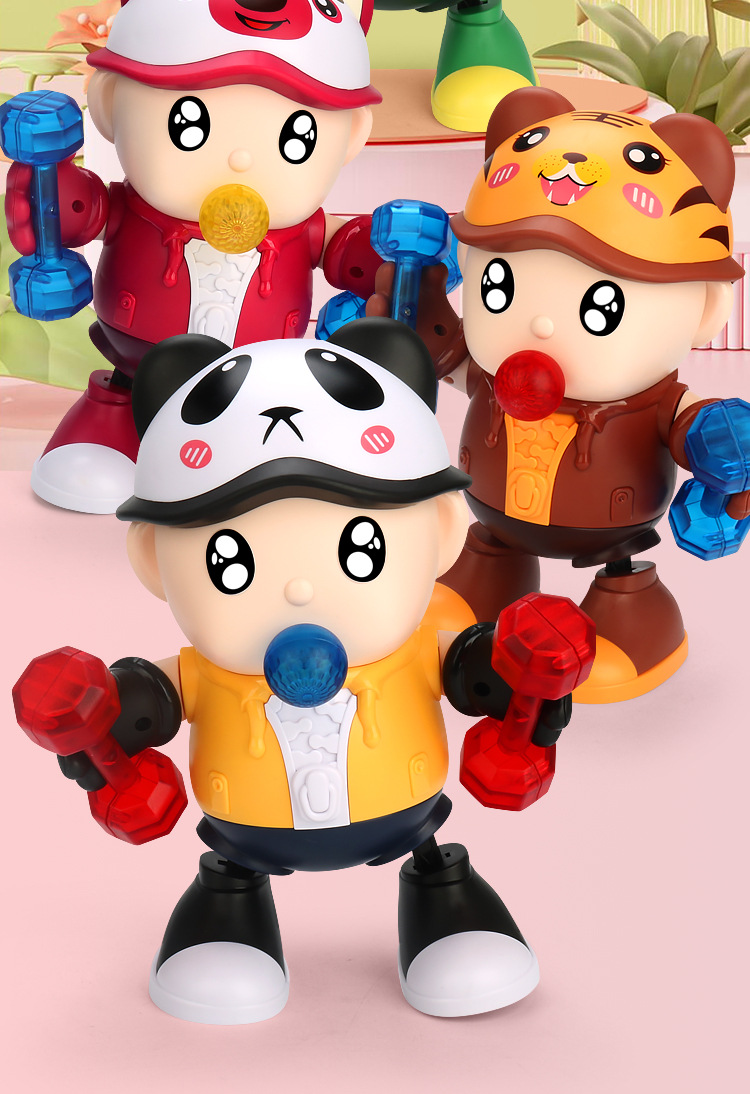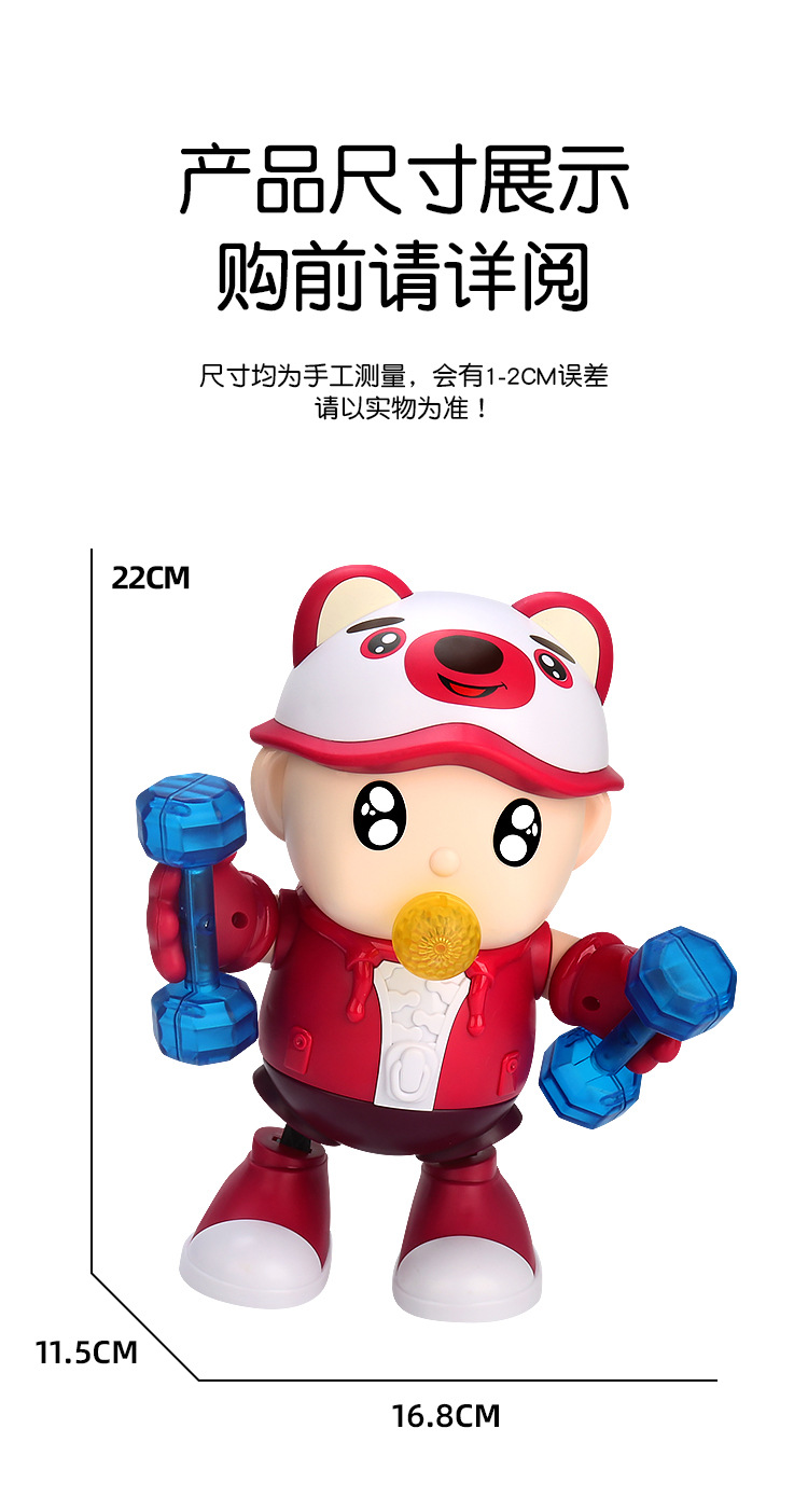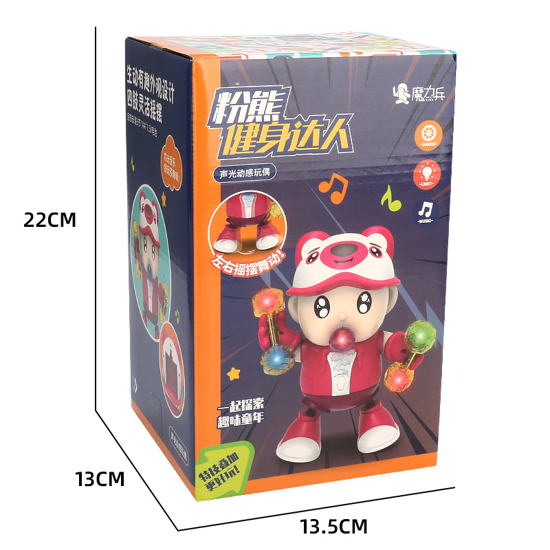 Oso de fresa baile eléctrico música luz columpio baile dibujos animados animal fitness experto muñeca eléctrica