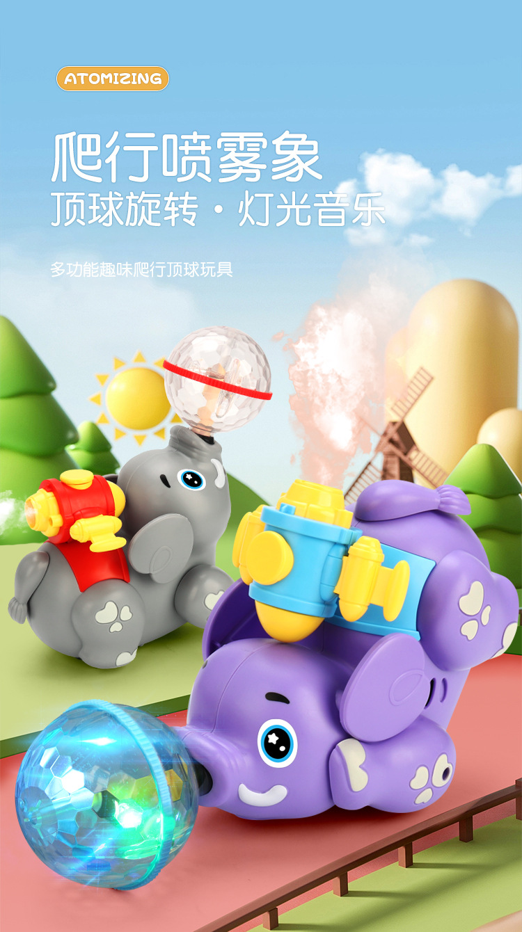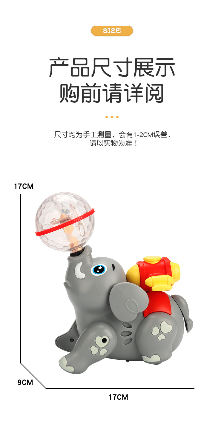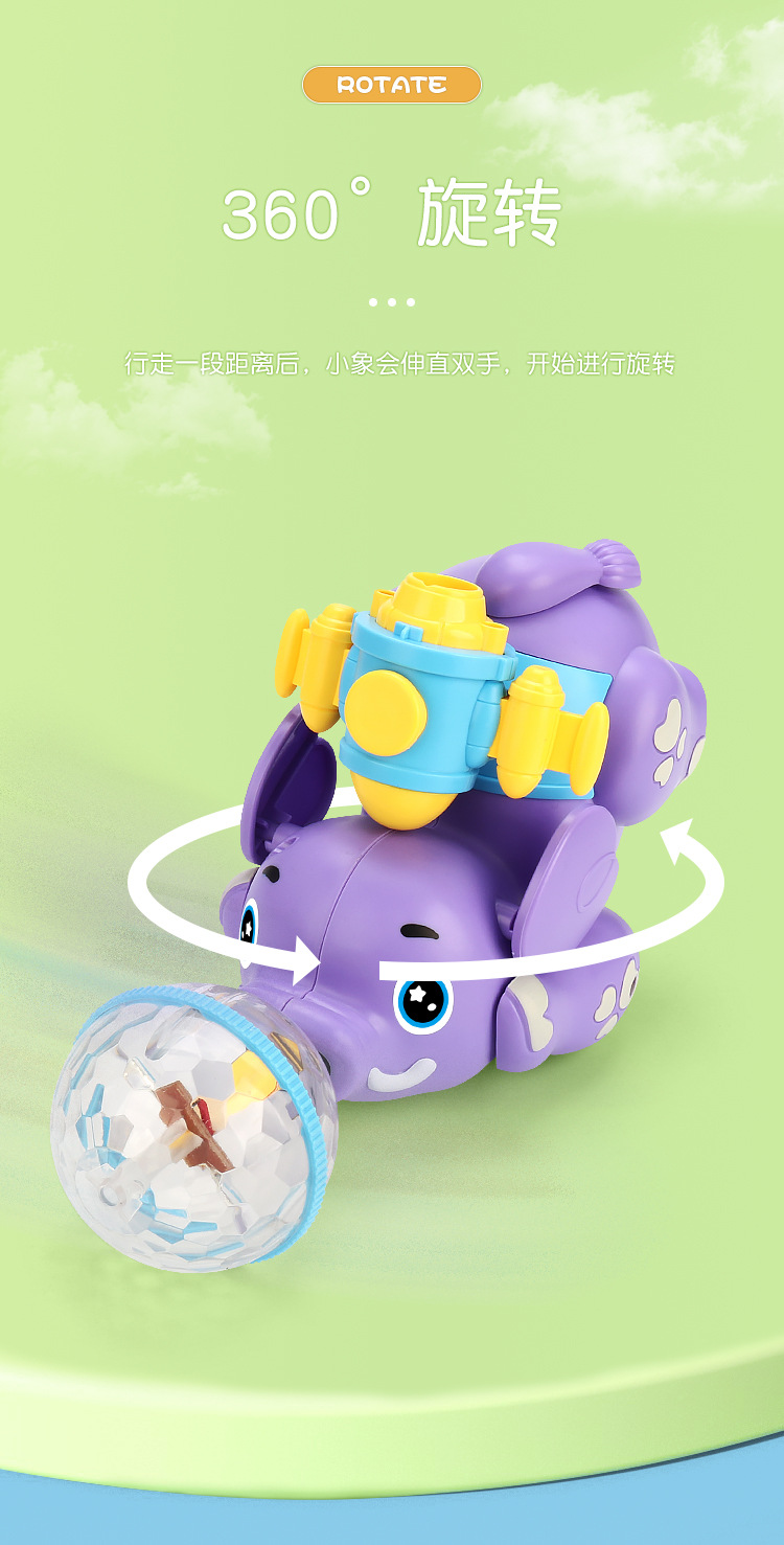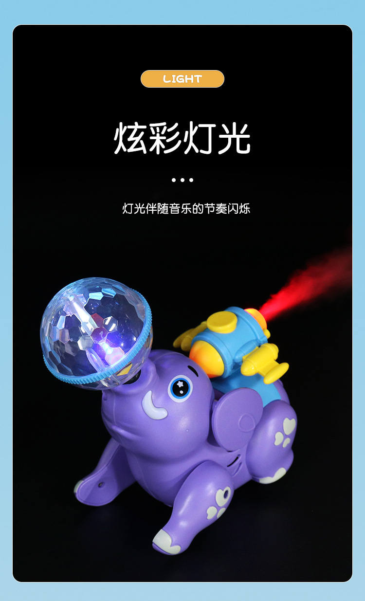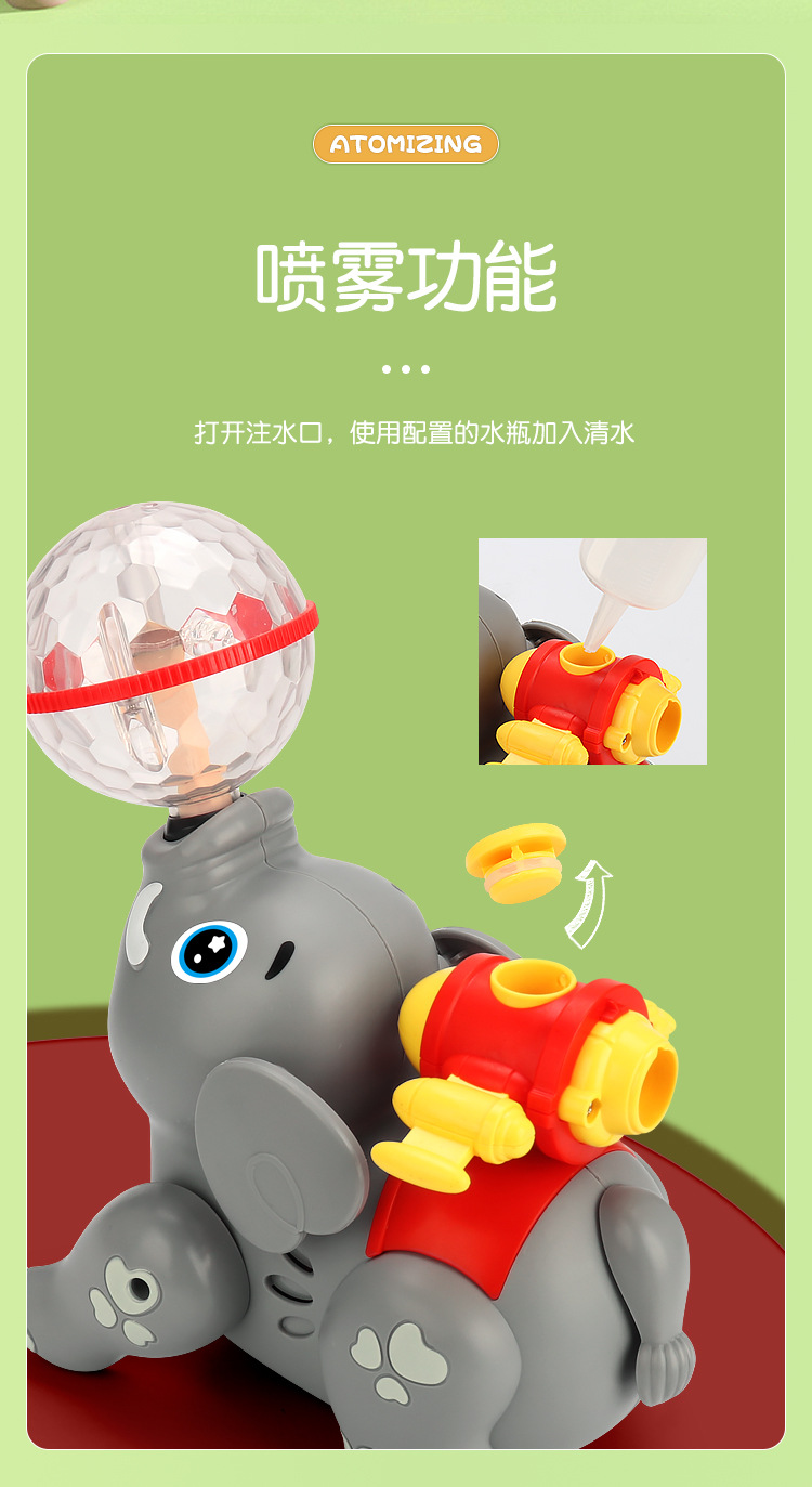 Aerosol eléctrico truco cúpula giratoria elefante colorido música Luz Juguetes educativos de los niños puesto venta al por mayor caliente