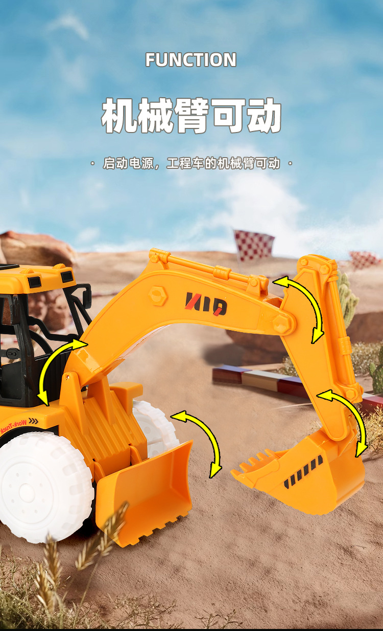 Modelo de simulación de vehículo de ingeniería eléctrica para niños Luz de música Excavadora universal Coche de juguete Niño Excavadora al por mayor