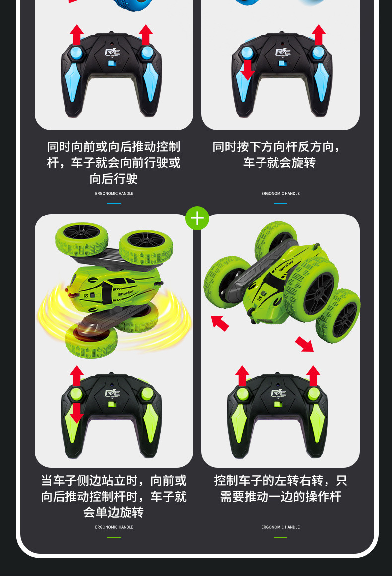 Transfronterizos 2.4G control remoto truco de luces frescas camión de volcado recargable de doble cara coche de control remoto